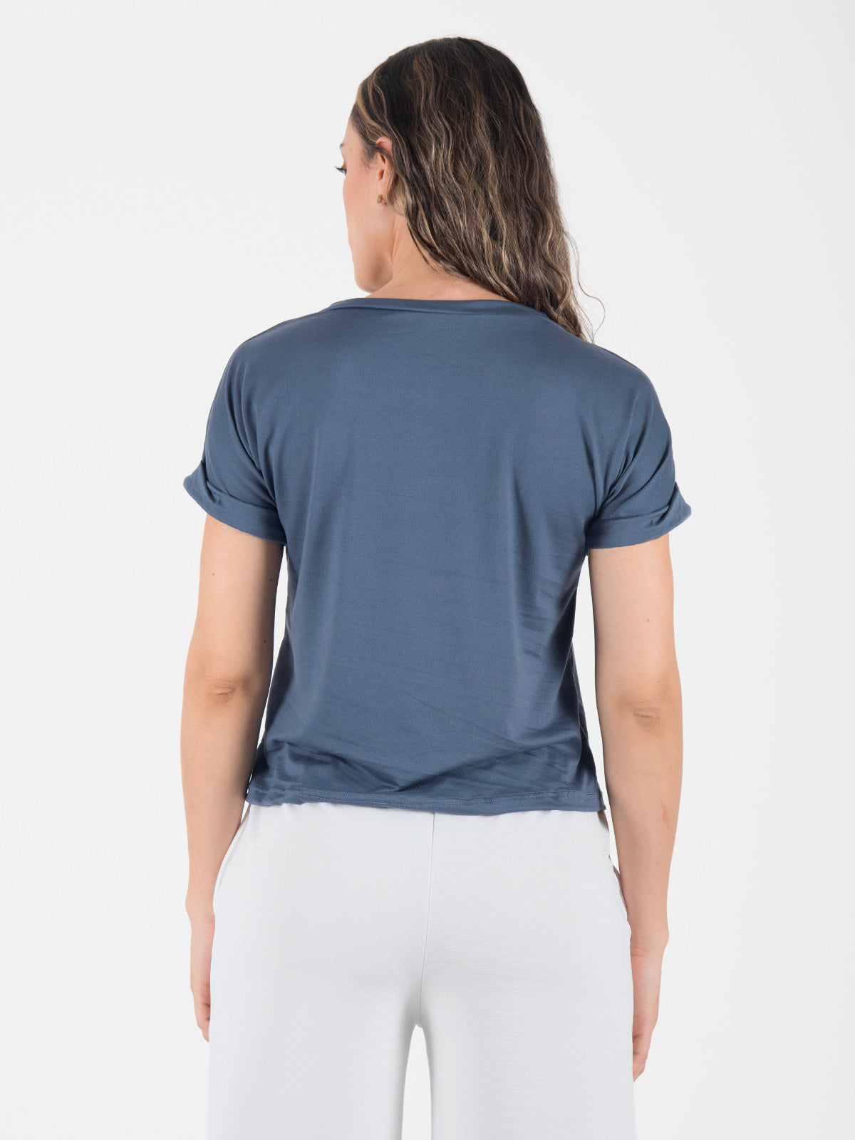 Blusa de silueta fluida con cuello en V y mangas integradas con puño tipo guardapolvo. Su diseño cómodo y elegante la convierte en una prenda versátil para el día a día o para ocasiones más formales.