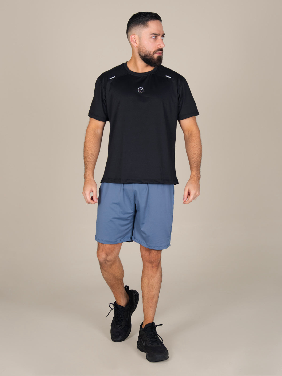 Camiseta de diseño moderno con cortes decorativos en el frente, manga corta y cuello redondo. Perfecta para un look deportivo o casual, ofreciendo comodidad y estilo en cada movimiento.