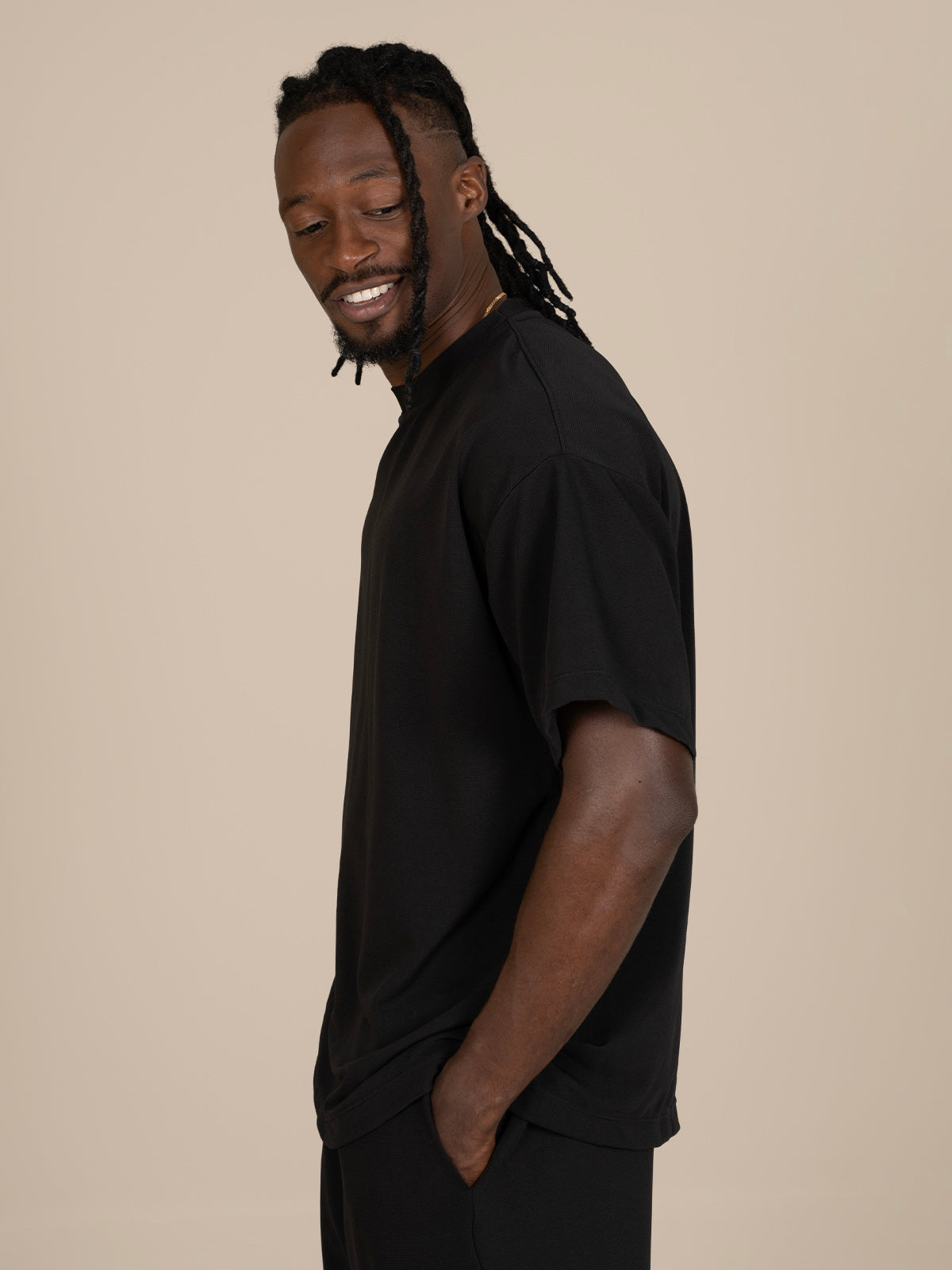 Camiseta de silueta amplia con manga corta y cuello ancho, perfecta para un estilo relajado y moderno. Su confección garantiza comodidad y libertad de movimiento durante todo el día.