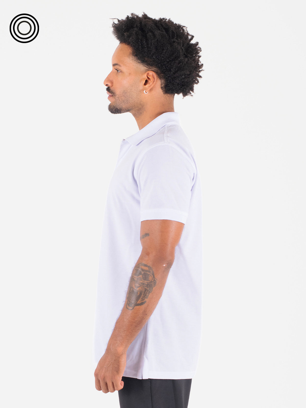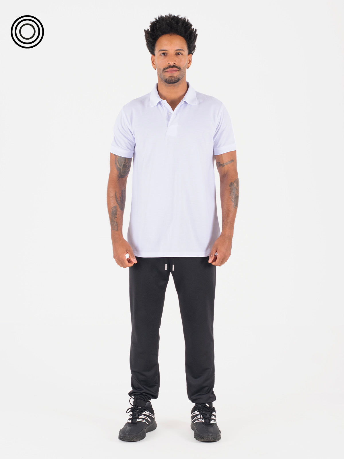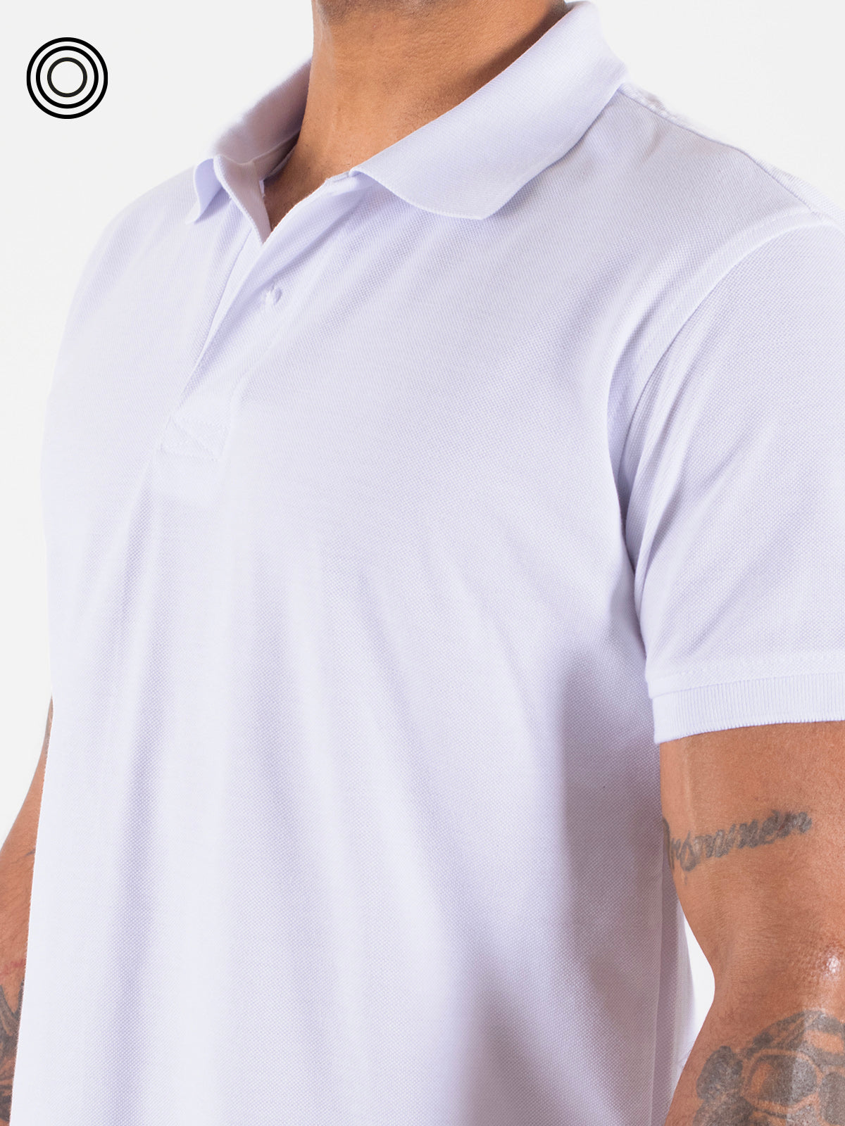 Camiseta: tipo polo con aberturas laterales. Cuello y puños tejidos, asentada a 1/4 en puños, hombros y mangas para una mejor estructura y acabado.