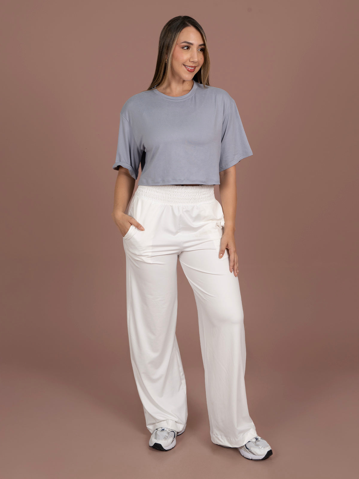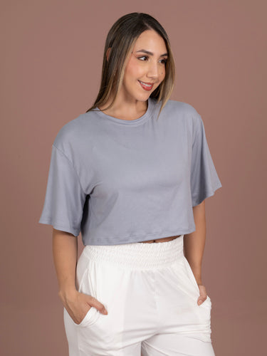 Camiseta: silueta amplia con manga corta y cuello redondo, diseñada para brindar comodidad y libertad de movimiento. Su caída suave la convierte en una prenda versátil, ideal para looks casuales y uso diario.