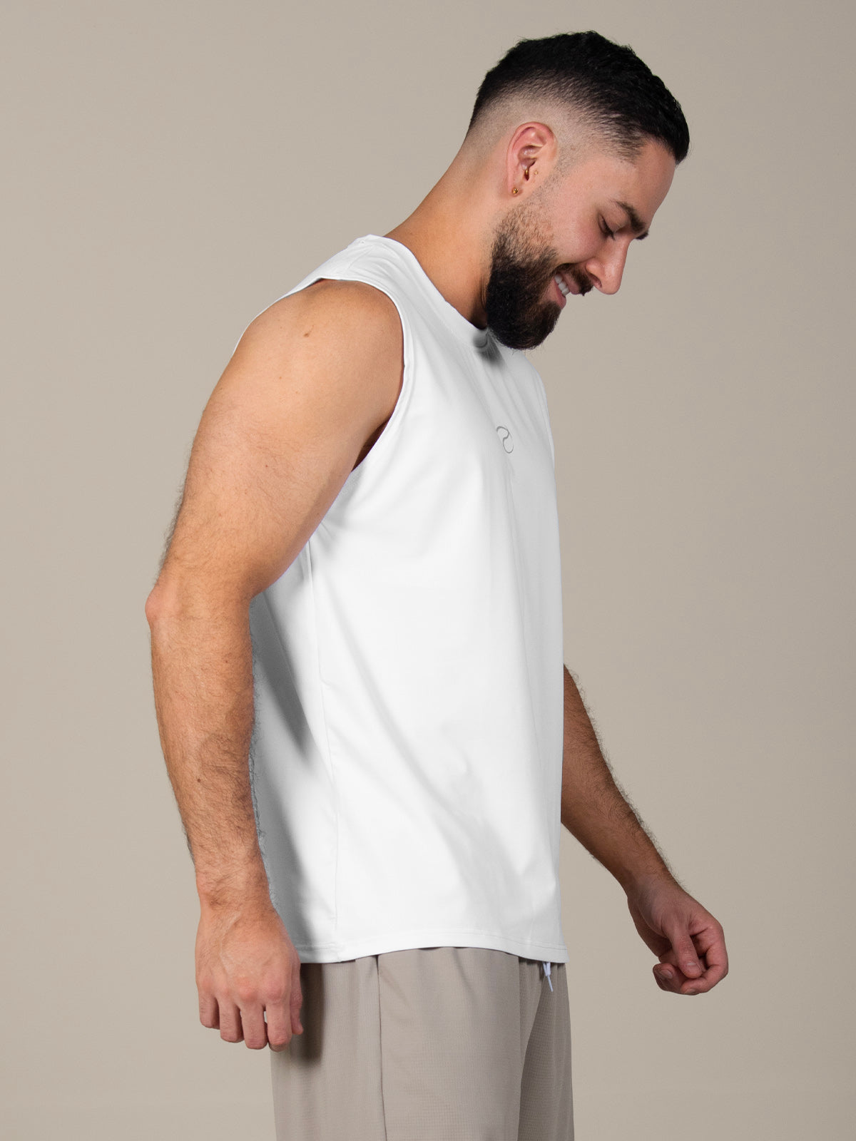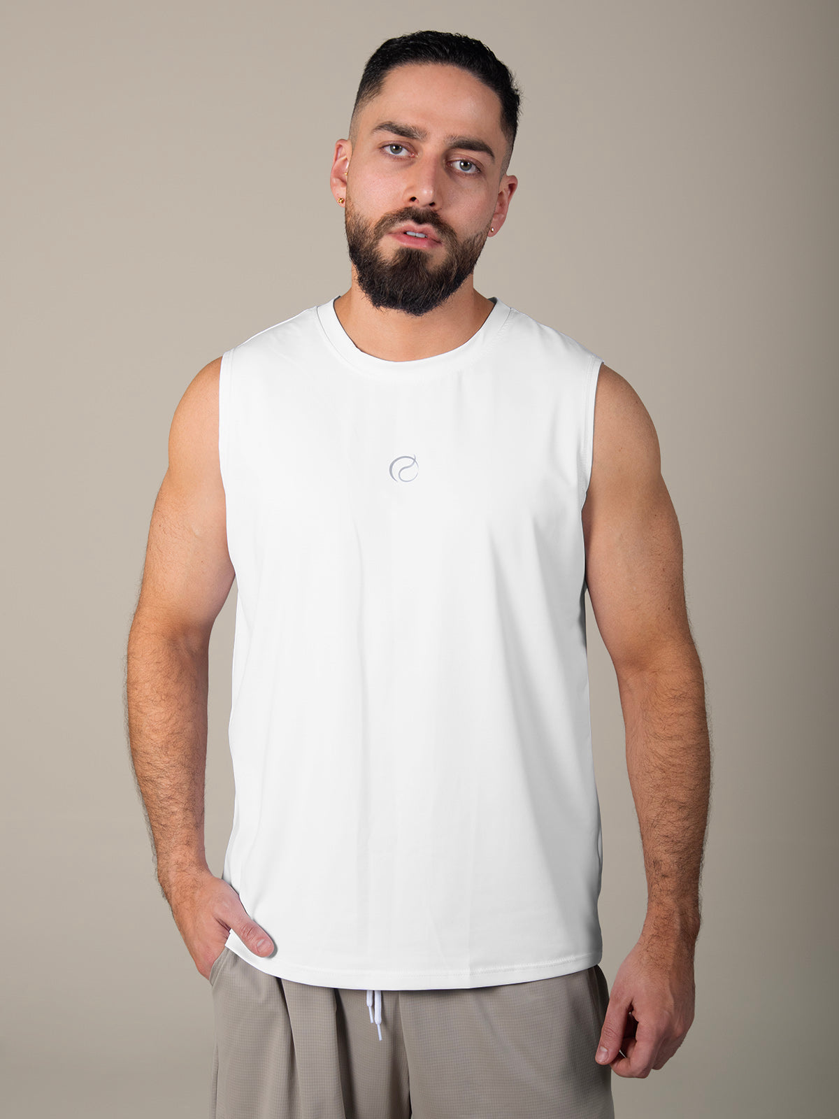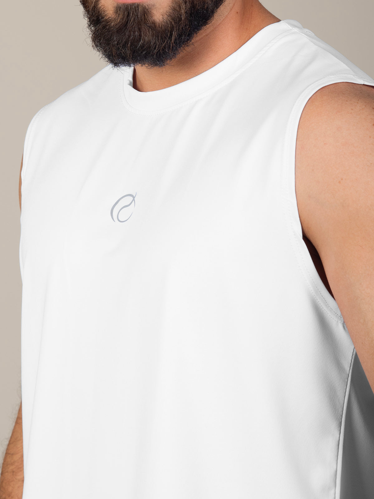 Camisilla: deportiva, cuello redondo, manga sisa, largo abajo de la cintura, transfer reflectivos en delantero. regular fit.