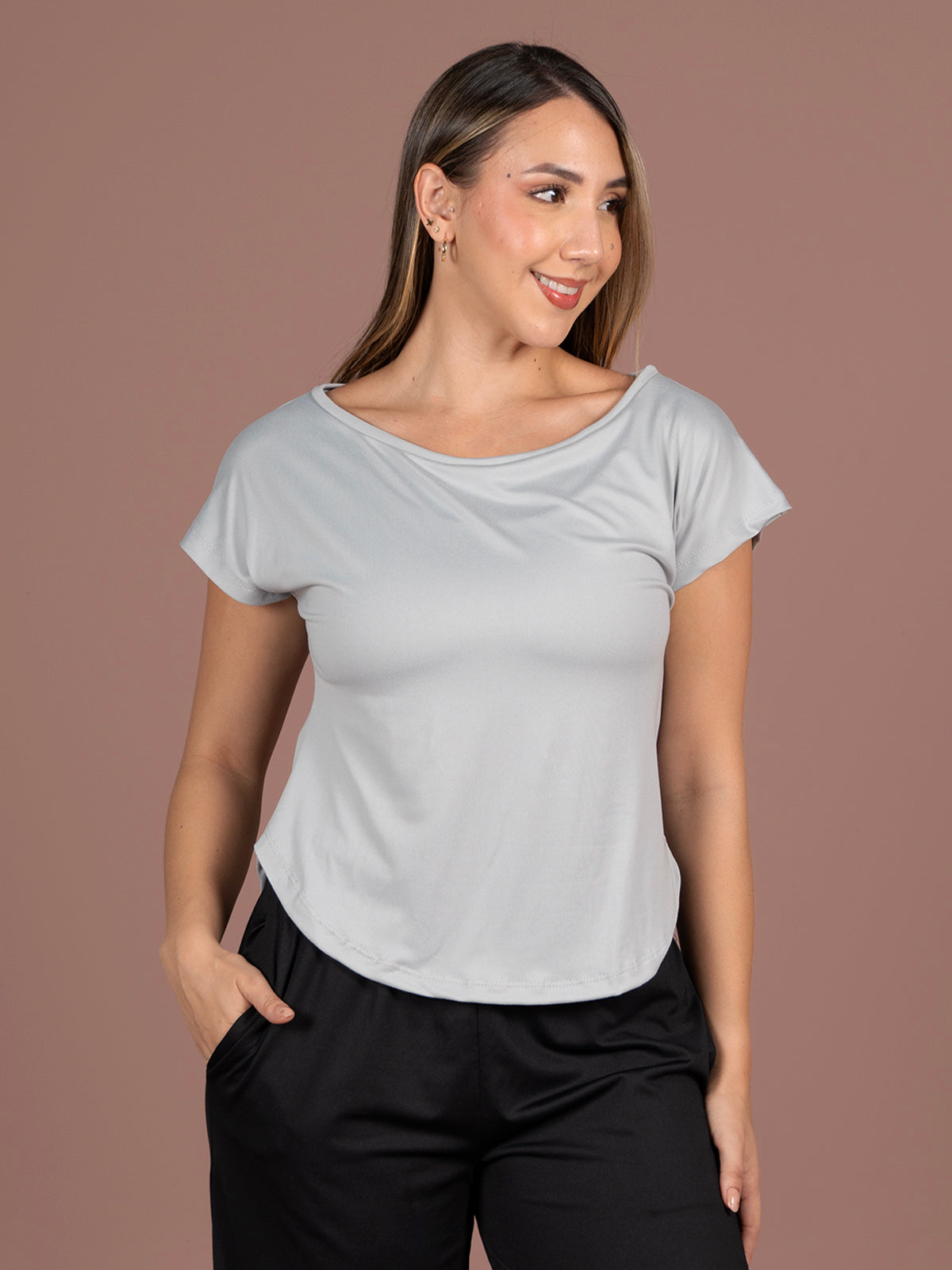 Tela: Piel de Durazno (95% poliéster – 5% spandex), suave al tacto, elástica y confortable, con excelente caída.