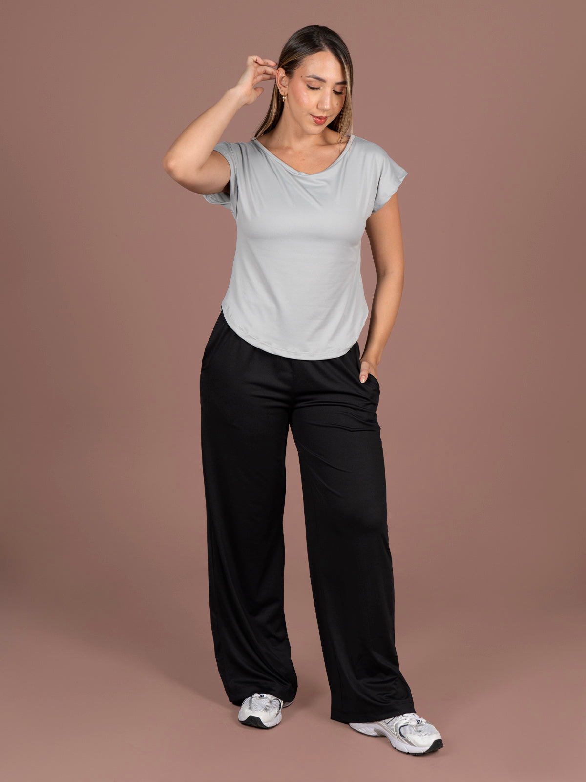 Blusa: Diseño con manga incluida y escote amplio, ideal para un estilo femenino, cómodo y versátil.