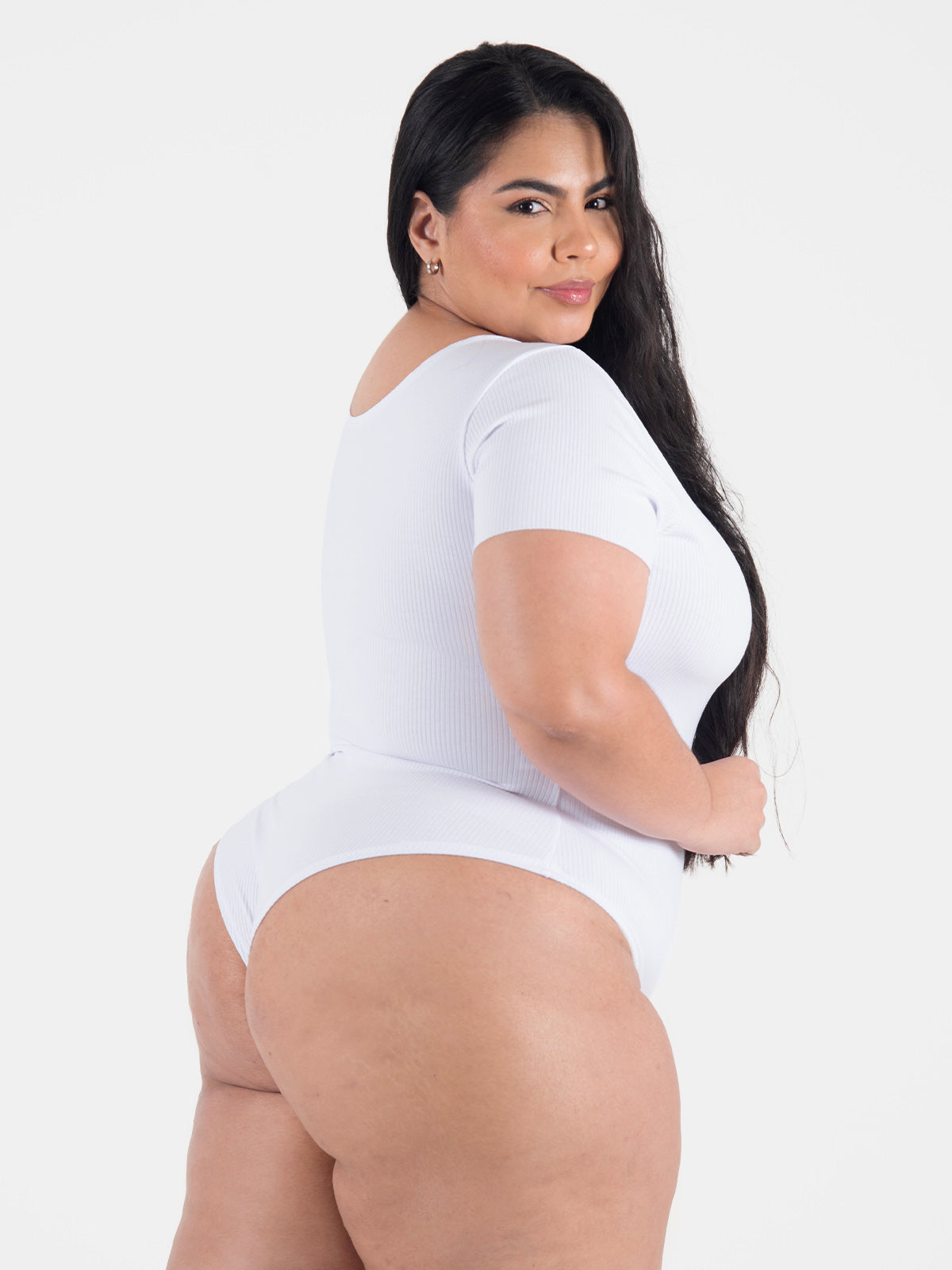Body: Manga corta al corte con escote redondo en el delantero y escote profundo en la espalda, ideal para un look moderno y femenino.