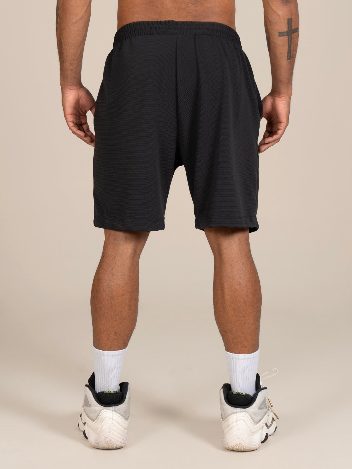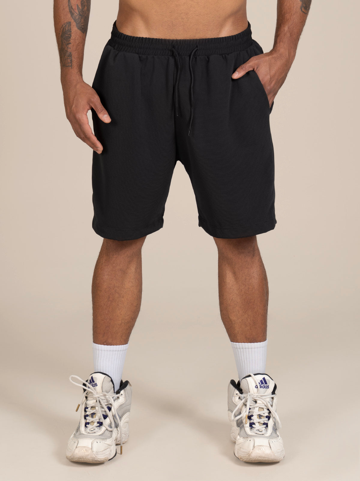 Pantaloneta: Diseño de hombre con bolsillos delanteros diagonales y pretina resortada con ojales y cordón ajustable, brindando comodidad y un ajuste práctico para el uso diario.