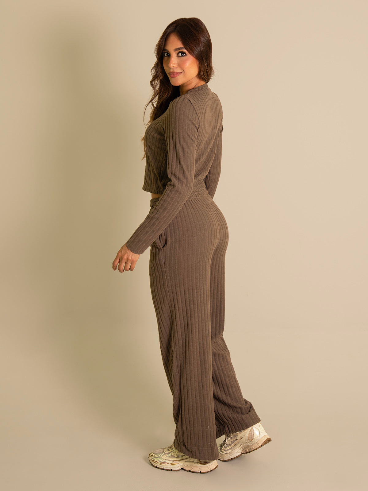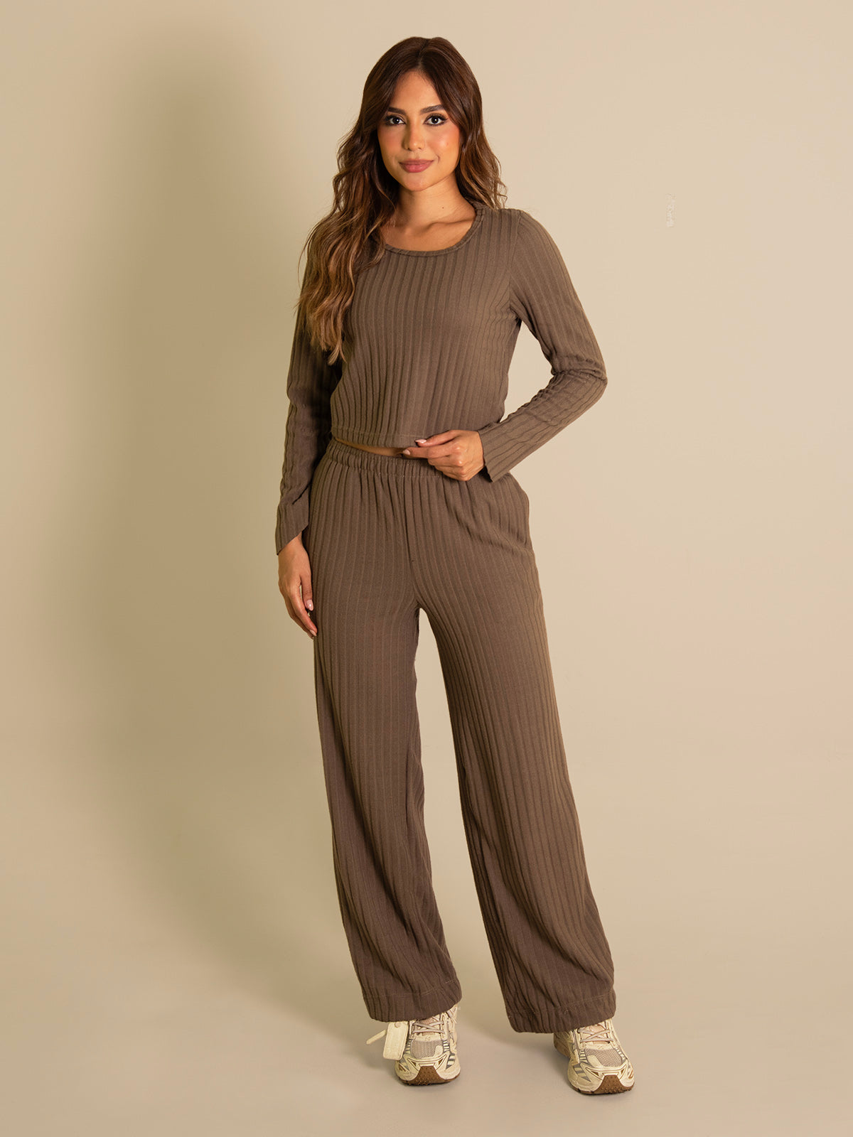Set cómodo y versátil, compuesto por pantalón de bota recta con bolsillos delanteros funcionales y pretina incluida resortada que ofrece un ajuste cómodo y favorecedor.