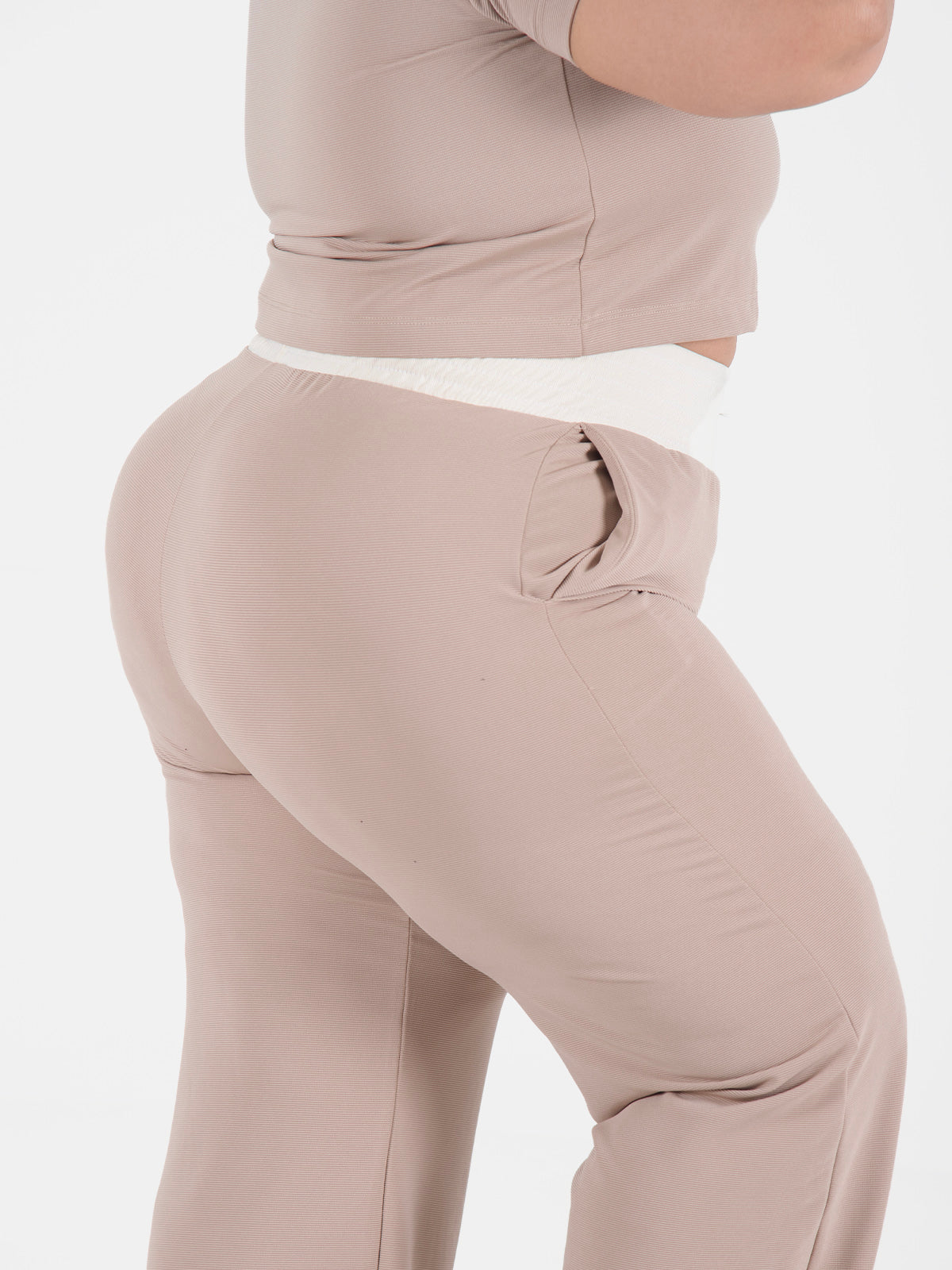 Pantalón: básico con bolsillos delanteros y pretina ancha en multiaguja.