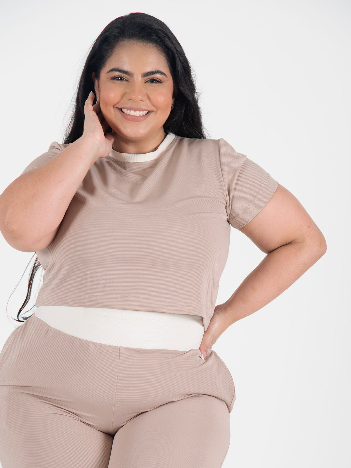 Camiseta: femenina tipo boxy con cuello redondo. El set incluye colores de tela en contraste (consultar a diseño por combinaciones).