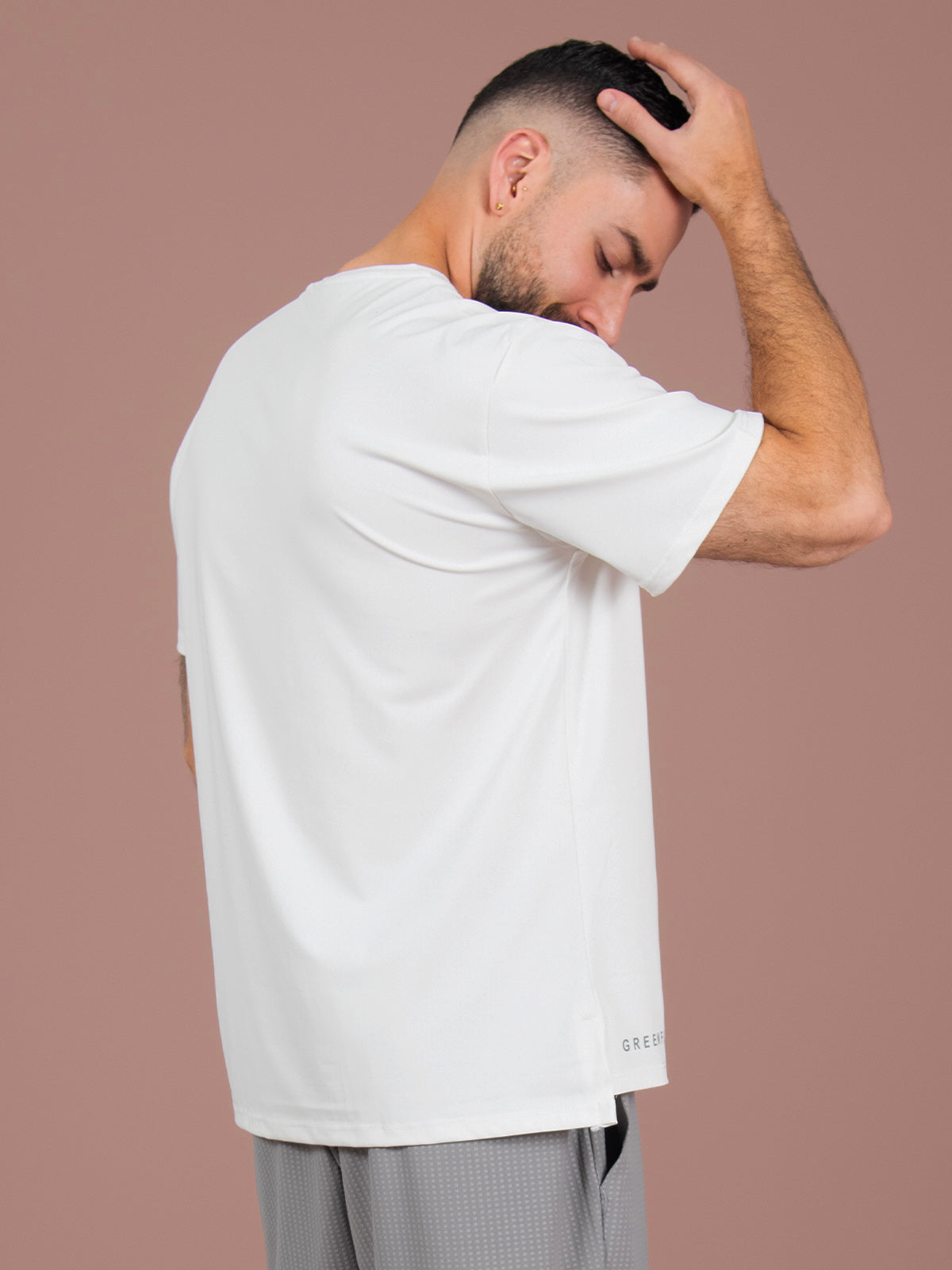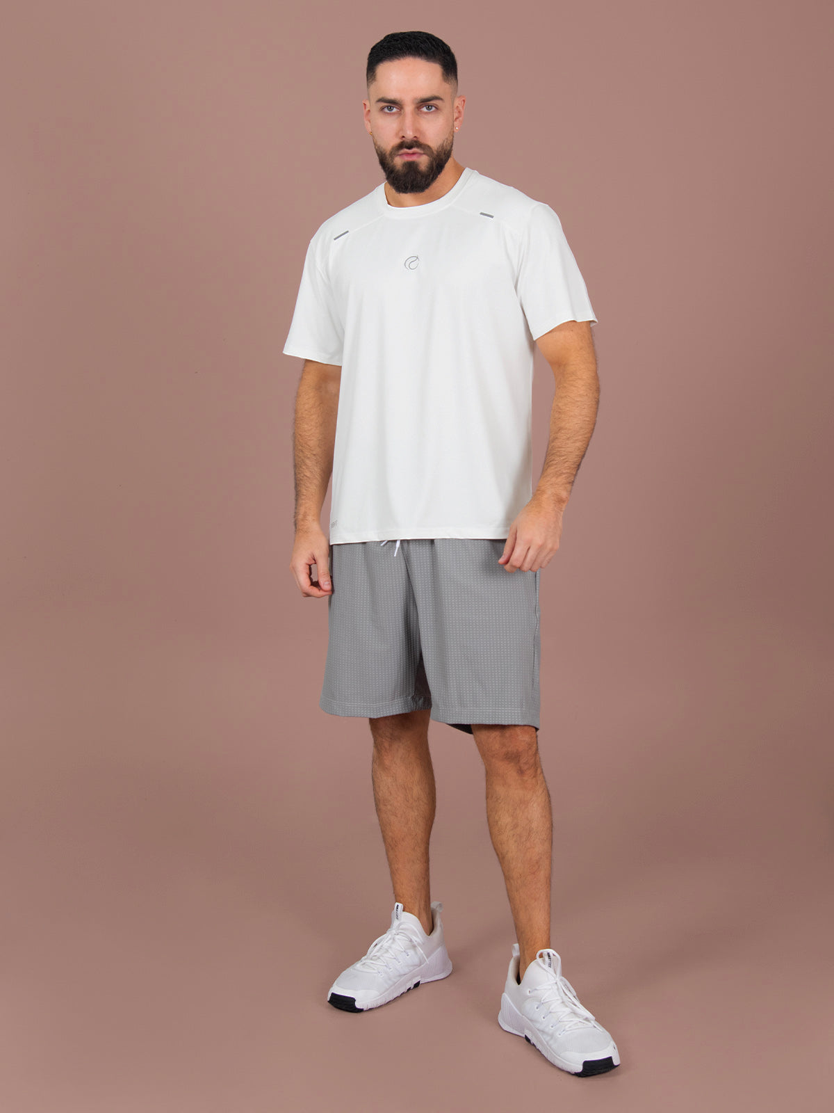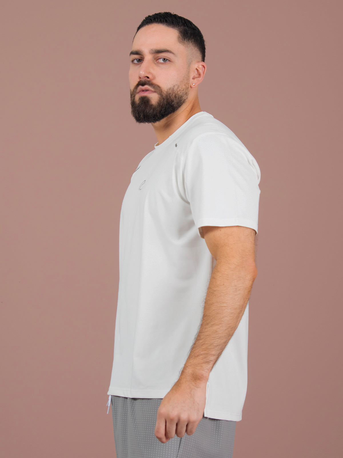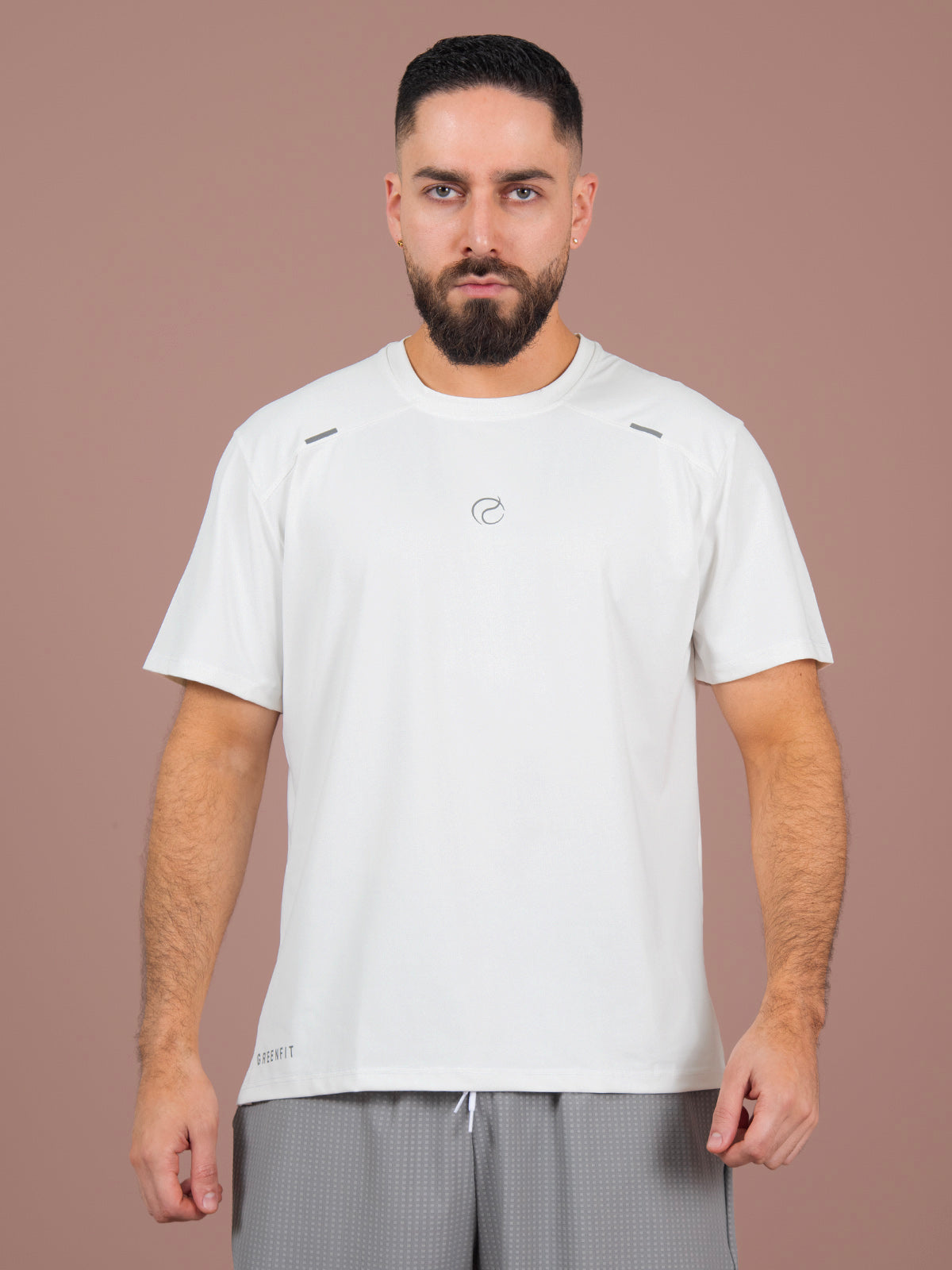 Camiseta deportiva cuello redondo, manga corta. Transfer reflectivo en delantero, relaxed fit.