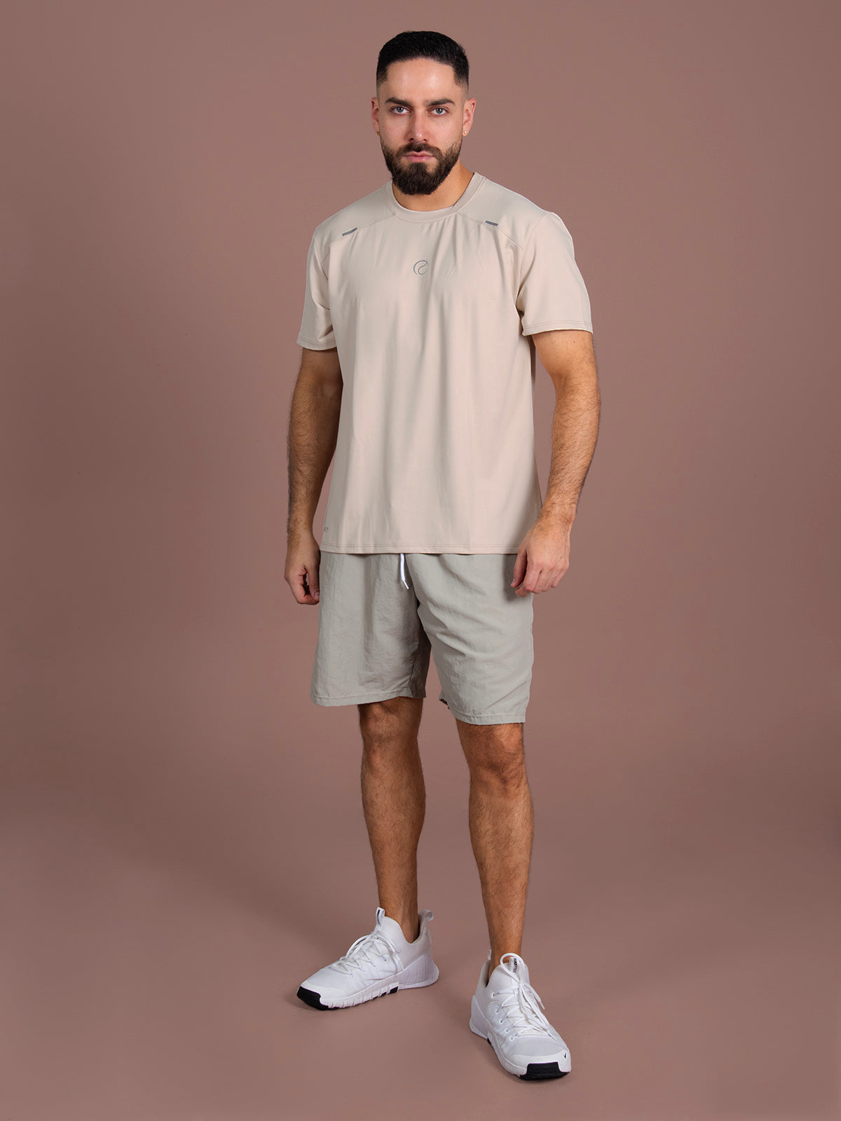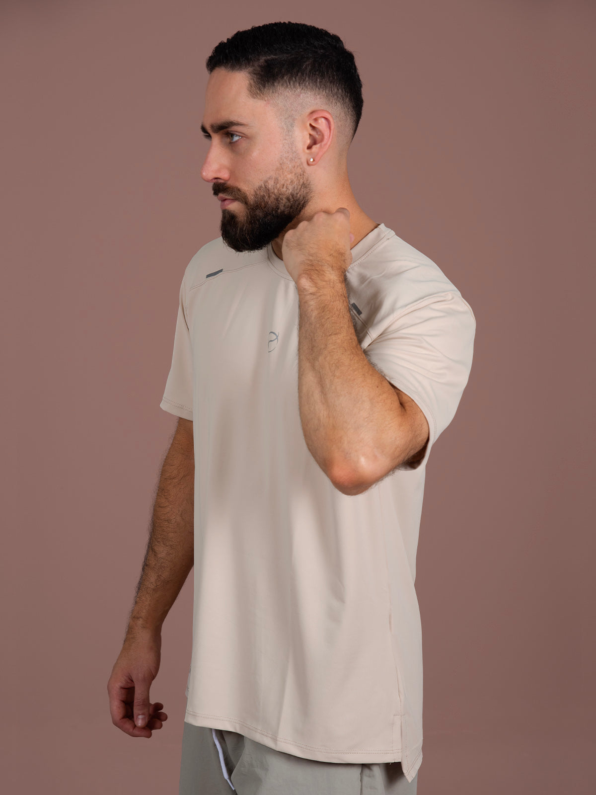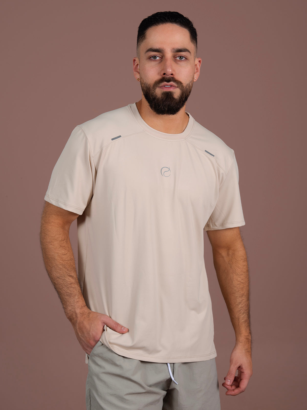 Camiseta deportiva cuello redondo, manga corta. Transfer reflectivo en delantero, relaxed fit.
