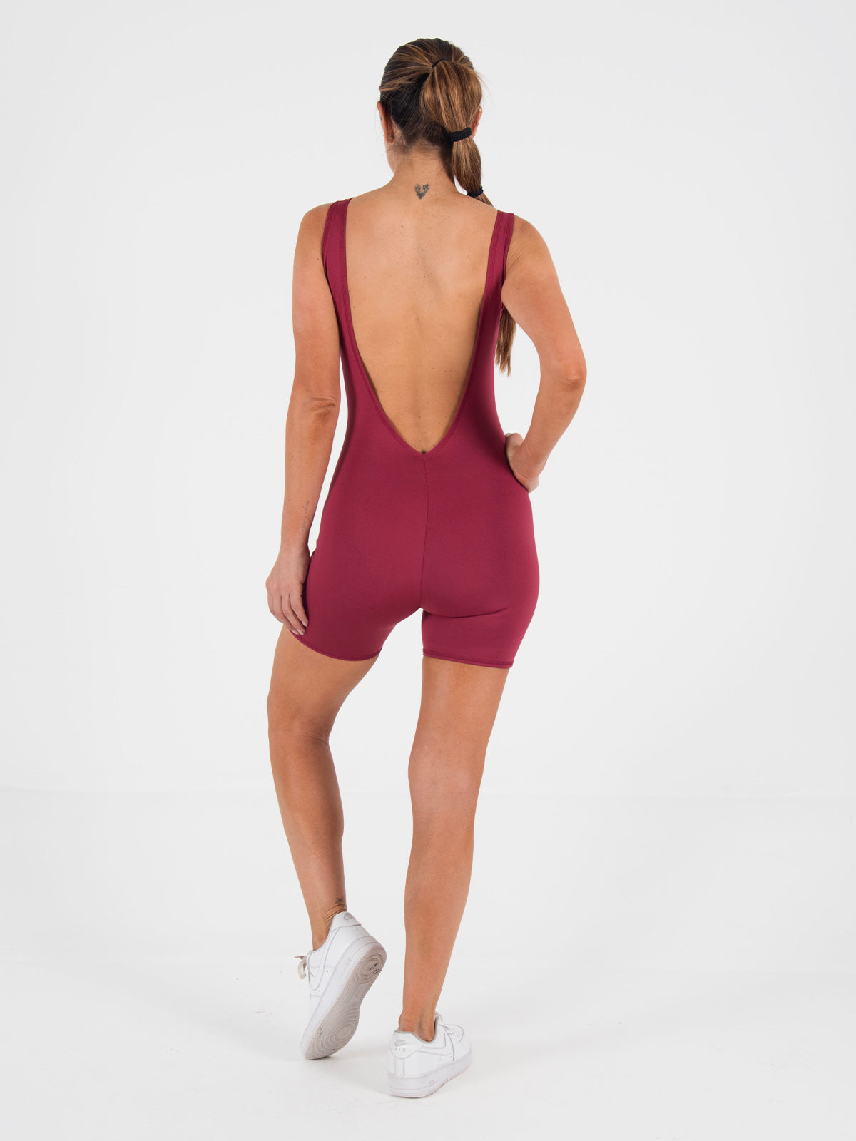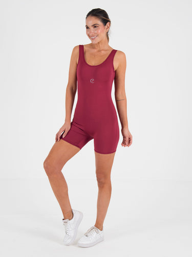 Enterizo: Corto sin mangas (sisa) con escote profundo en la espalda y puntada decorativa en sisas, escote y botas.
