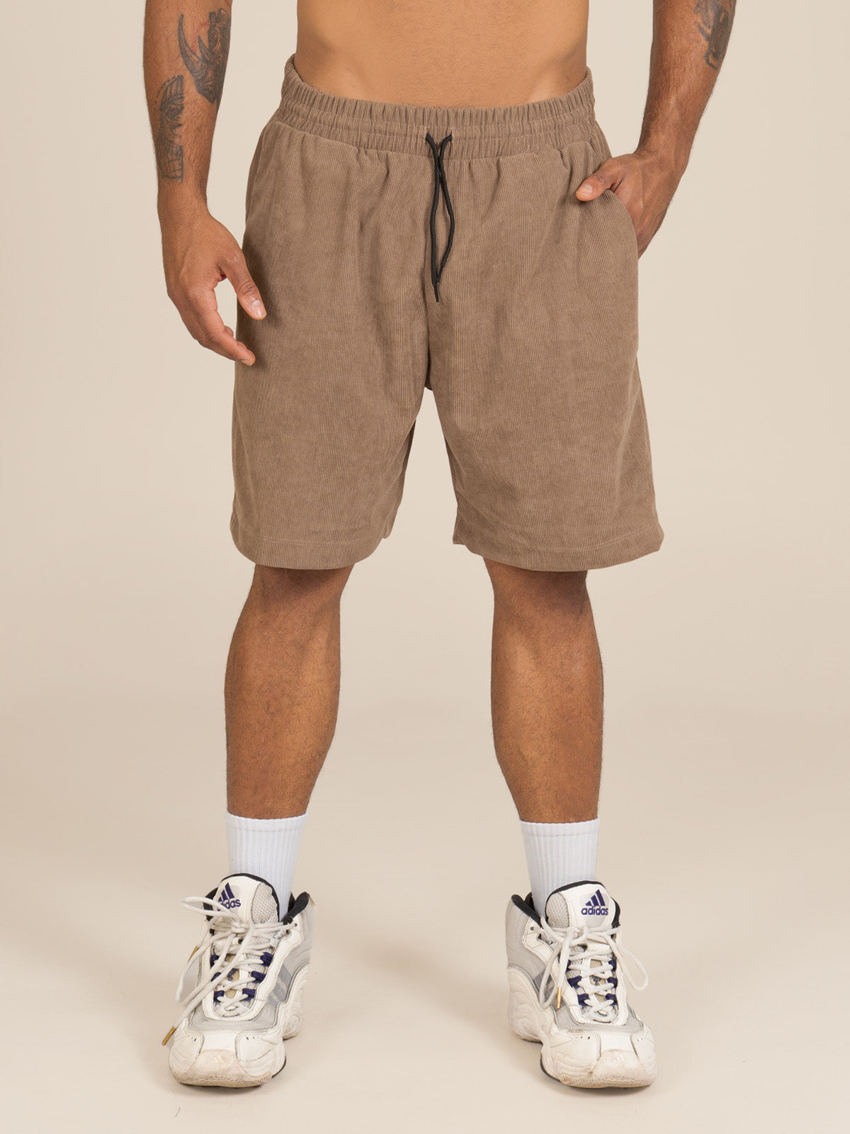 Pantaloneta: pantaloneta básica con bolsillos delanteros, pretina resortada con ojales y cordón.