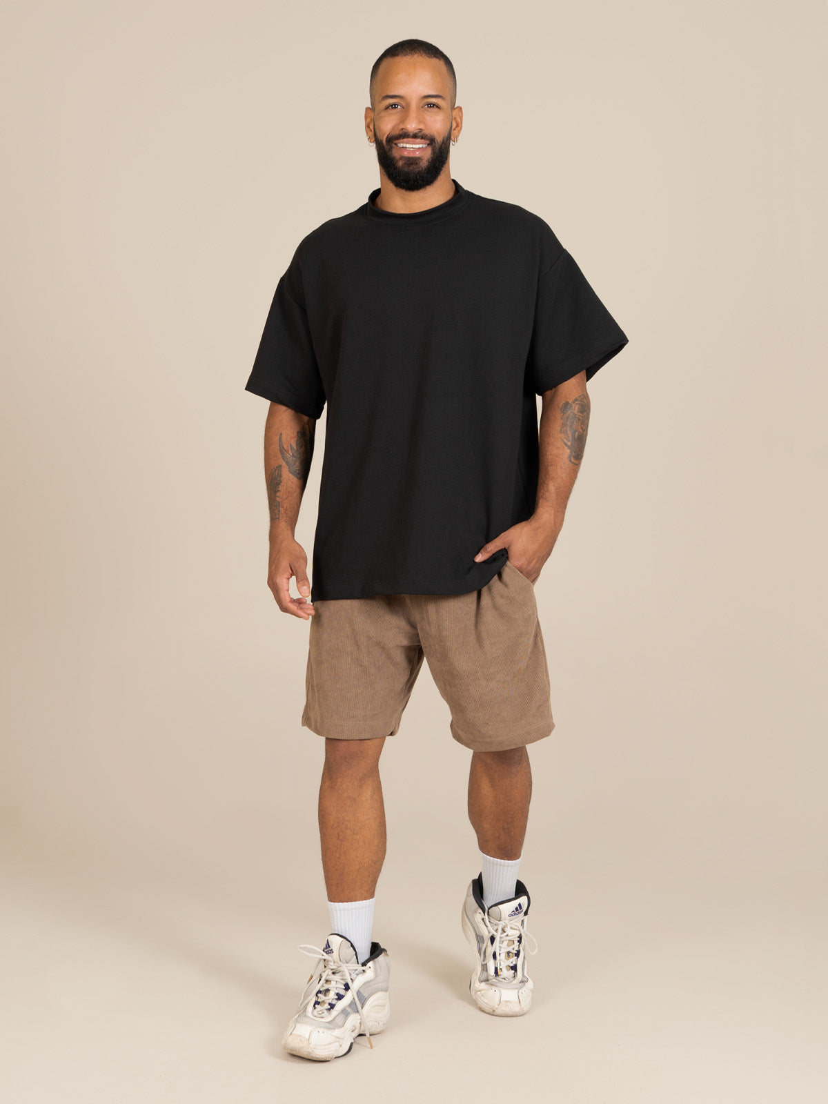 Modelo: Mide 1,76 m y está usando talla L como referencia visual.