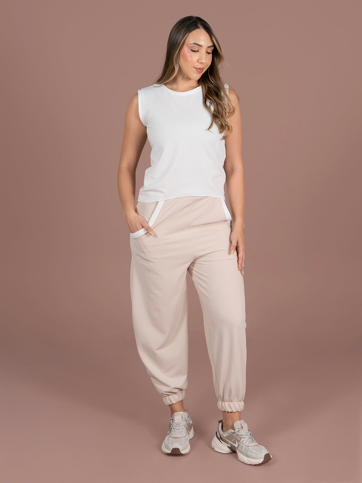 jogger: de silueta amplia con maxibolsillos sesgados, pretina ancha y botas resortadas