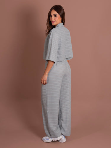 Set de dos piezas con un diseño fresco y relajado, ideal para looks casuales y cómodos. El pantalón de bota recta cuenta con pretina resortada que se adapta al cuerpo y bolsillos laterales funcionales, brindando comodidad y libertad de movimiento.