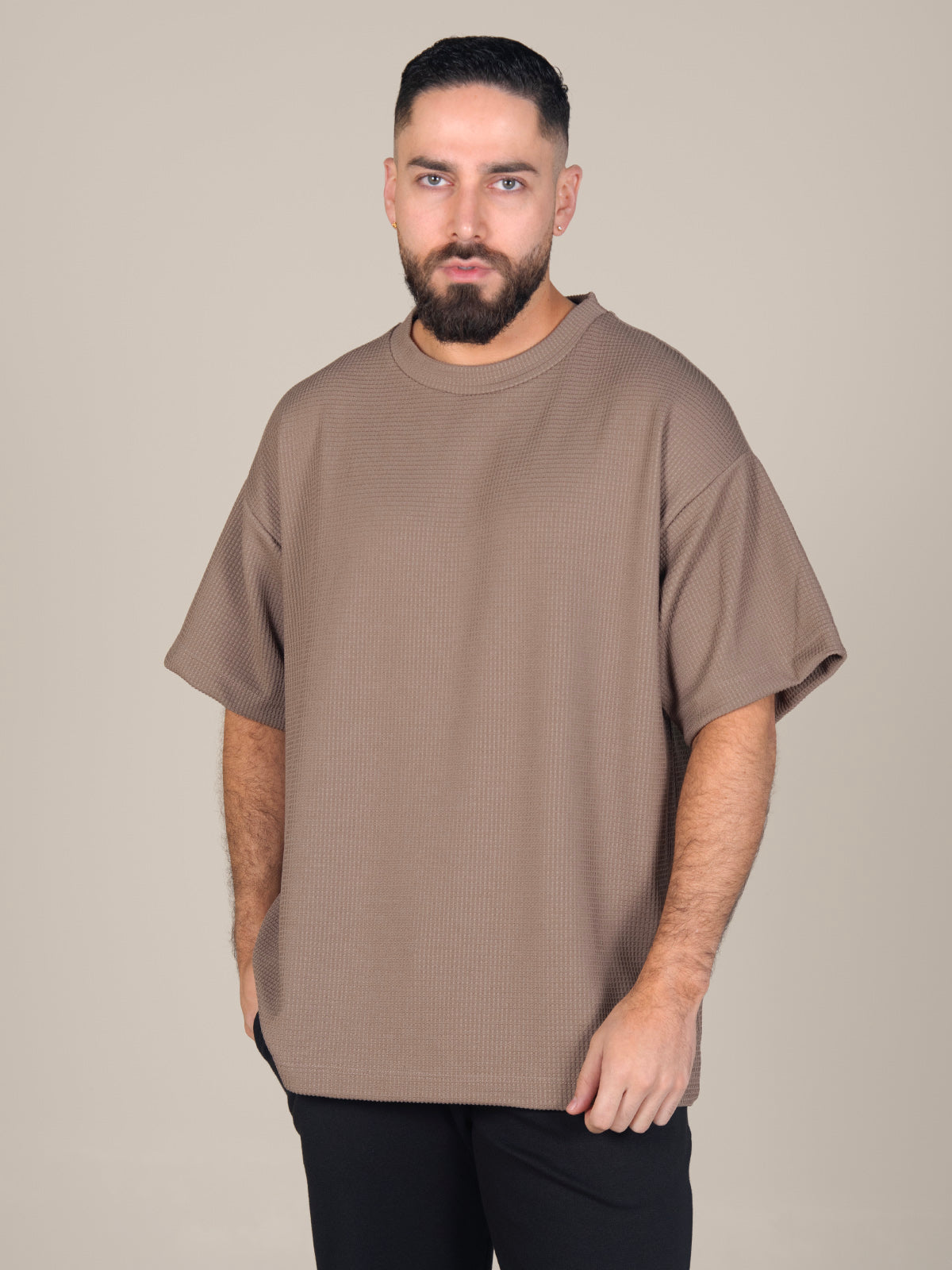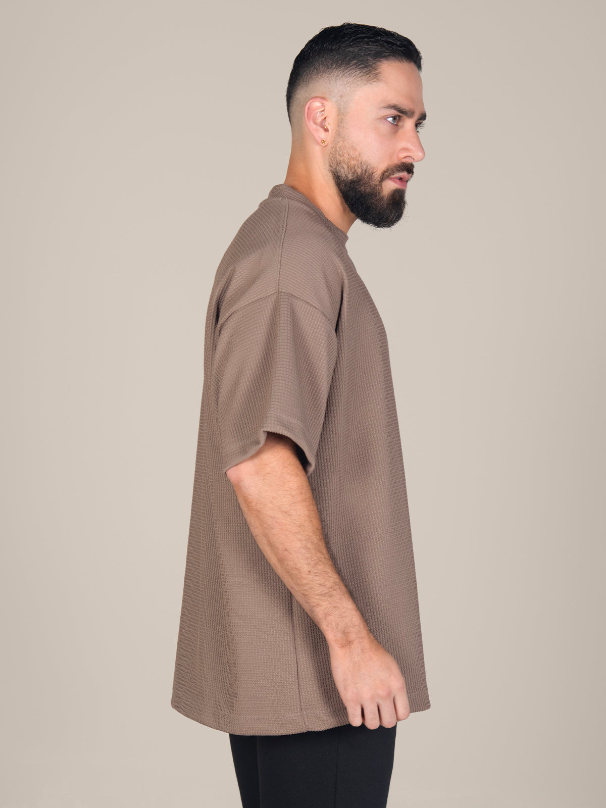 Camiseta: Diseño de hombre tipo oversize con manga corta y cuello ancho, ideal para un estilo relajado, moderno y cómodo.