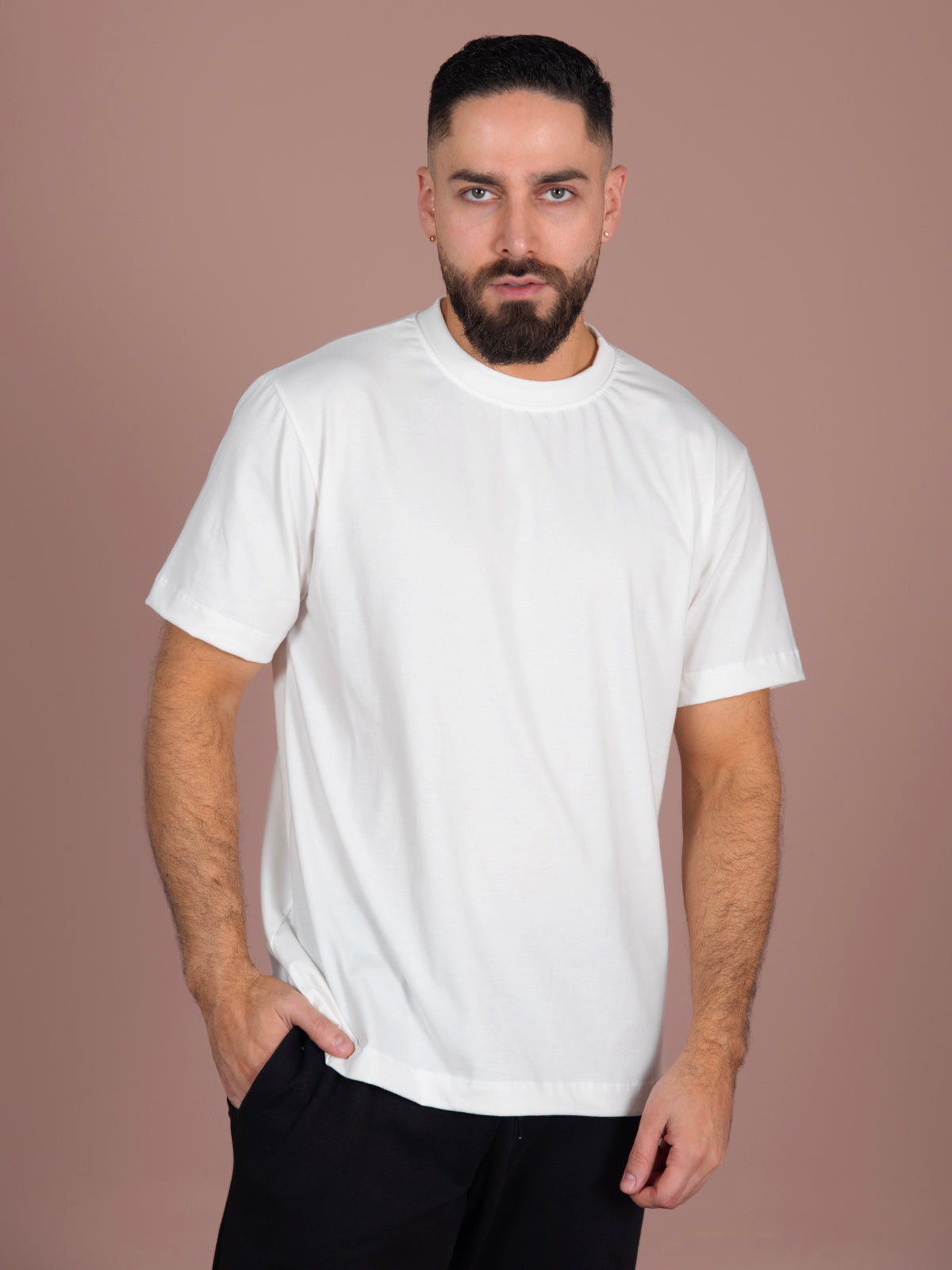 Camiseta: Diseño de hombre con manga corta y cuello redondo ancho, ideal para un estilo cómodo, casual y versátil.