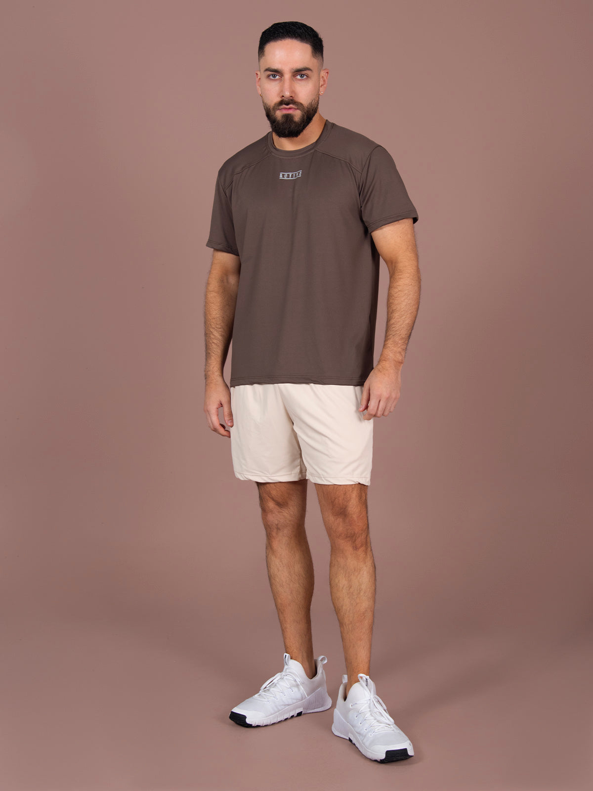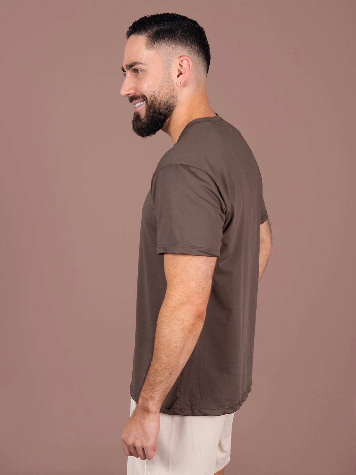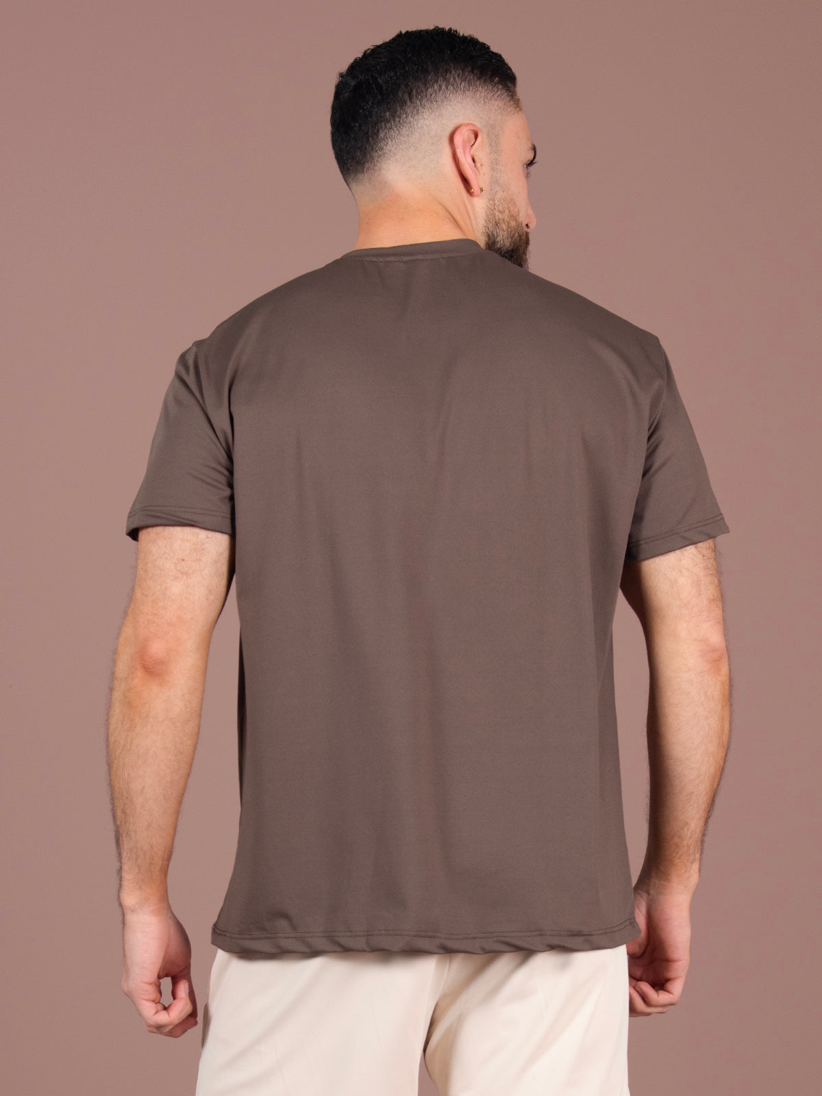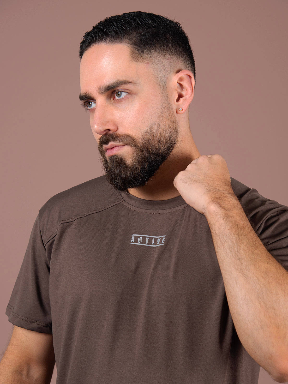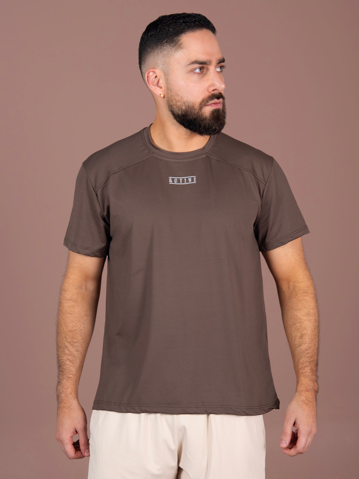 Camiseta: Hombre con cortes en delantero, manga corte y cuello redondo.