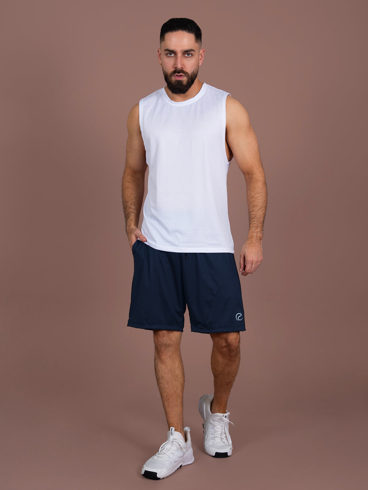 Pantaloneta: Diseño básico con bolsillos delanteros funcionales, pretina resortada con ojales y cordón ajustable que brinda comodidad y practicidad.