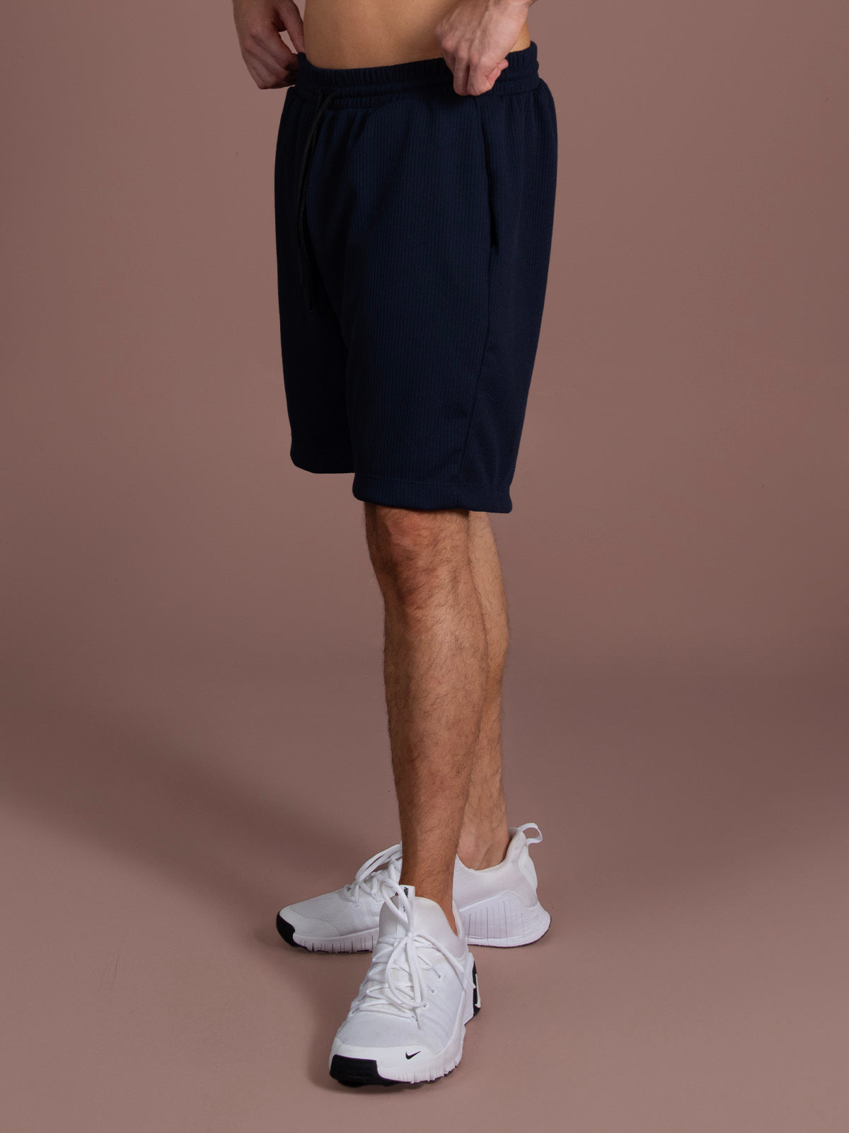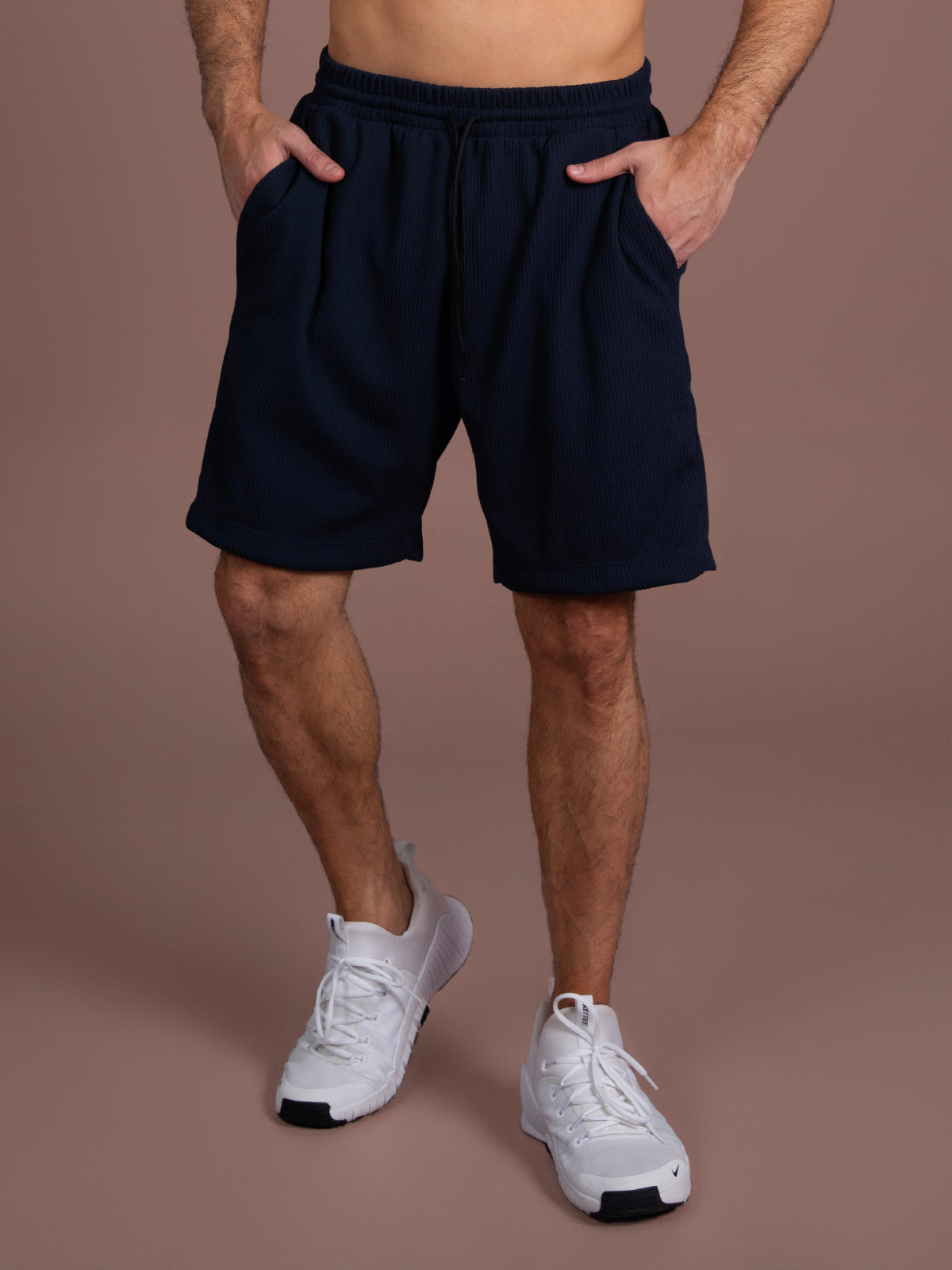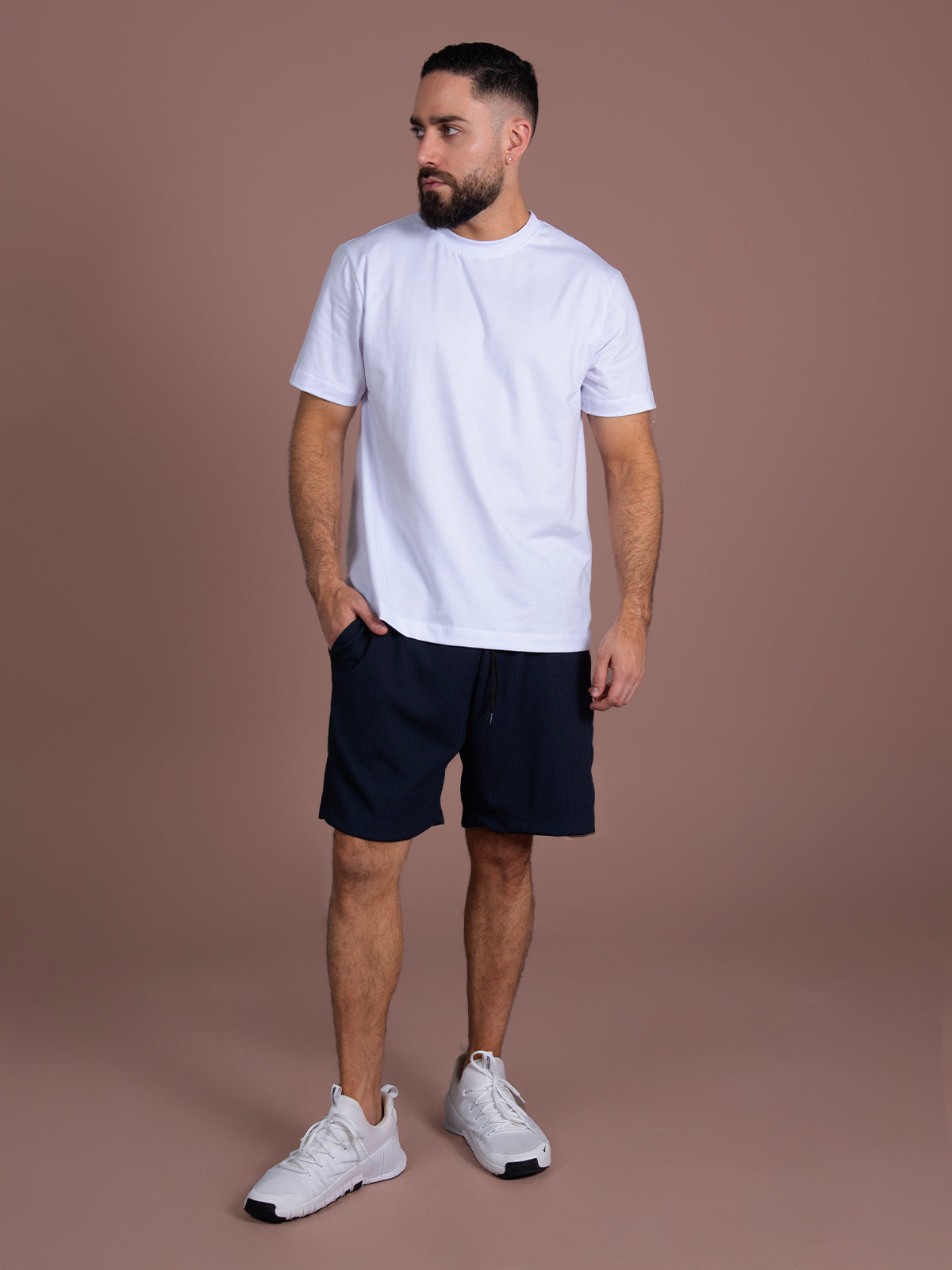 Pantaloneta: básica con bolsillos delanteros y pretina resortada con cordón.