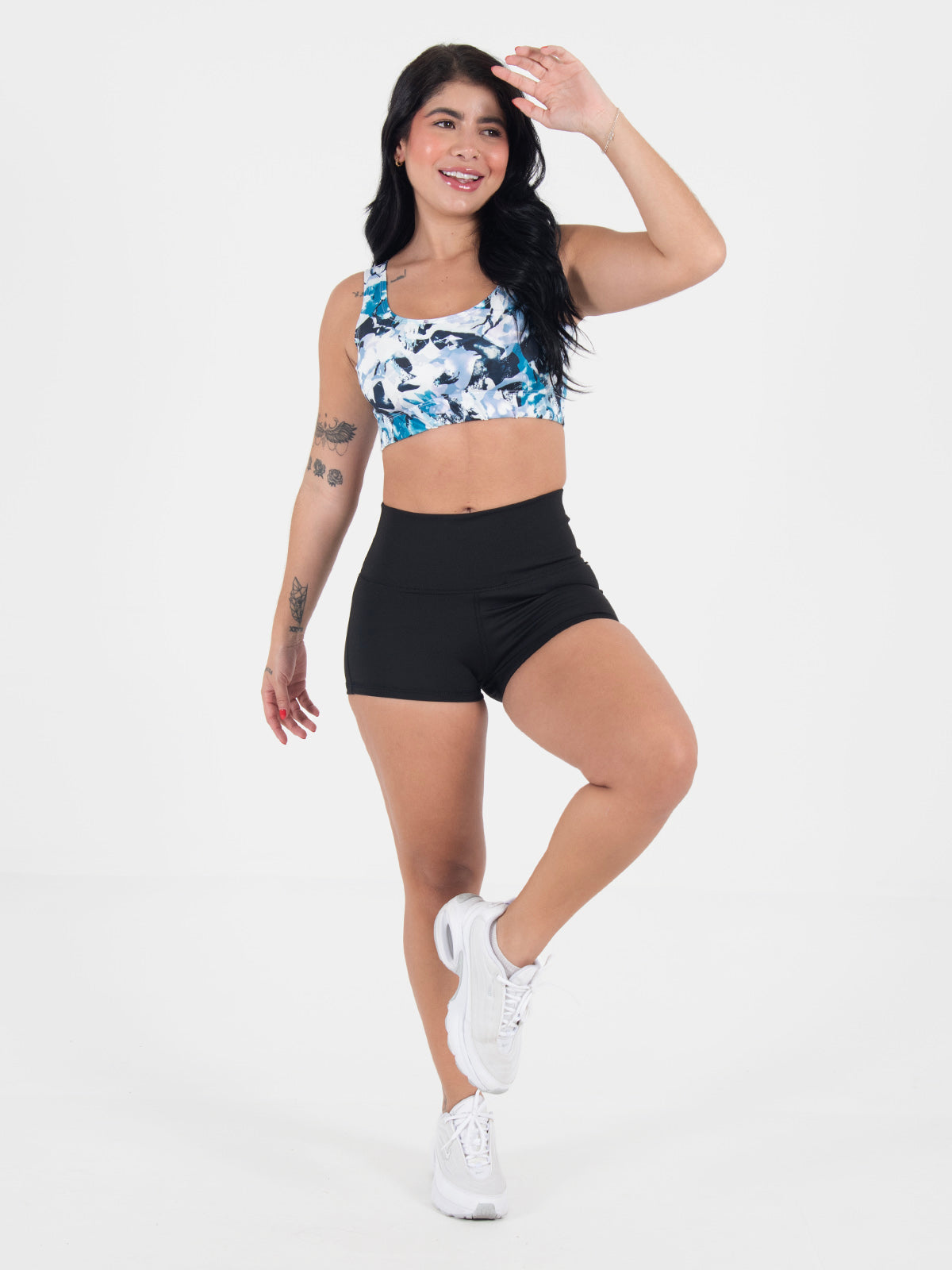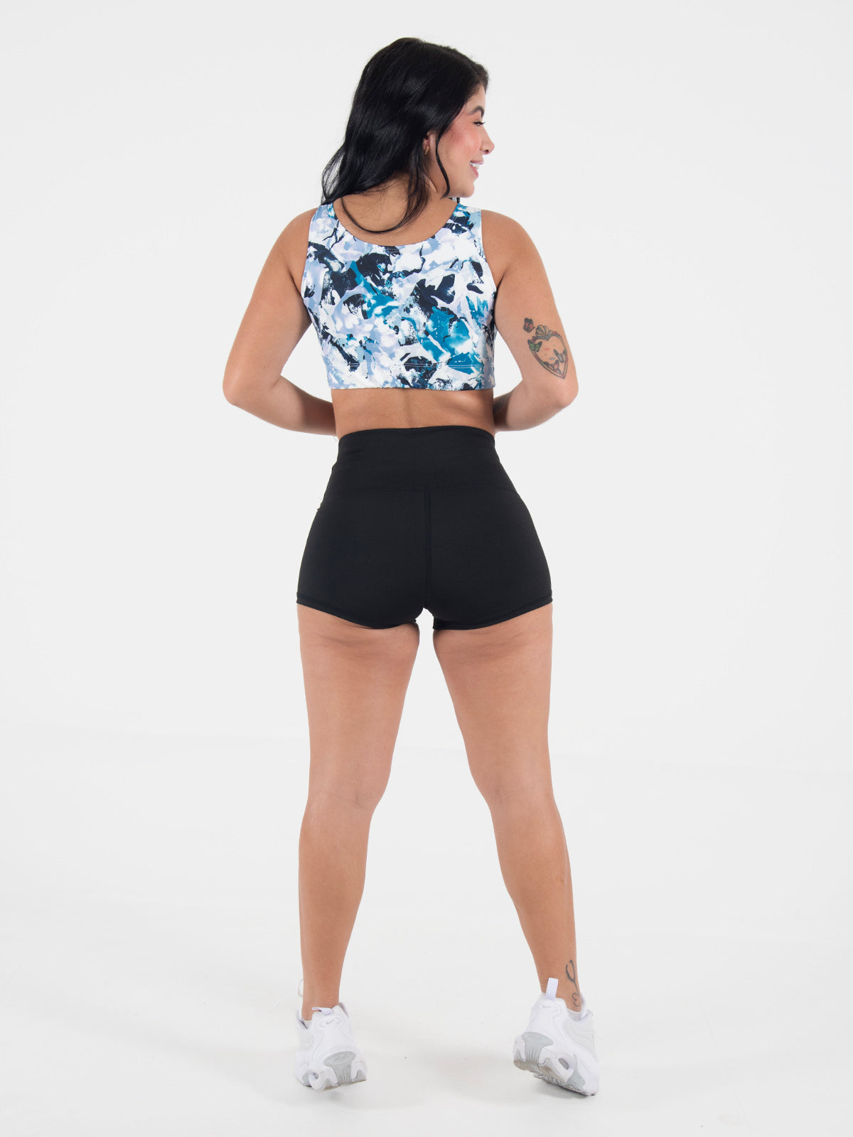 Top: Escote redondo con elástico en la parte inferior para un ajuste firme. La espalda amplia brinda soporte adicional, asegurando comodidad y libertad de movimiento.