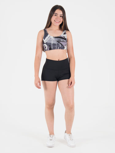 Short: de pretina alta control de abdomen y ajuste perfecto para realzar la figura. Estilo extra corto largo entrepierna corto y longitud total de 34 cm.