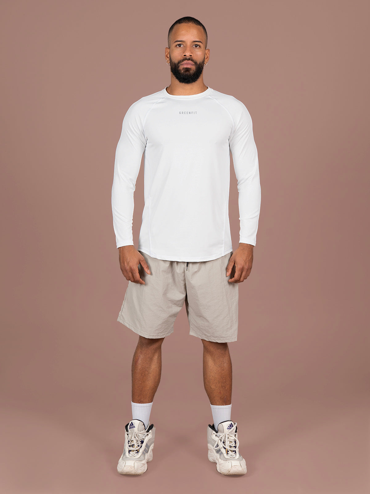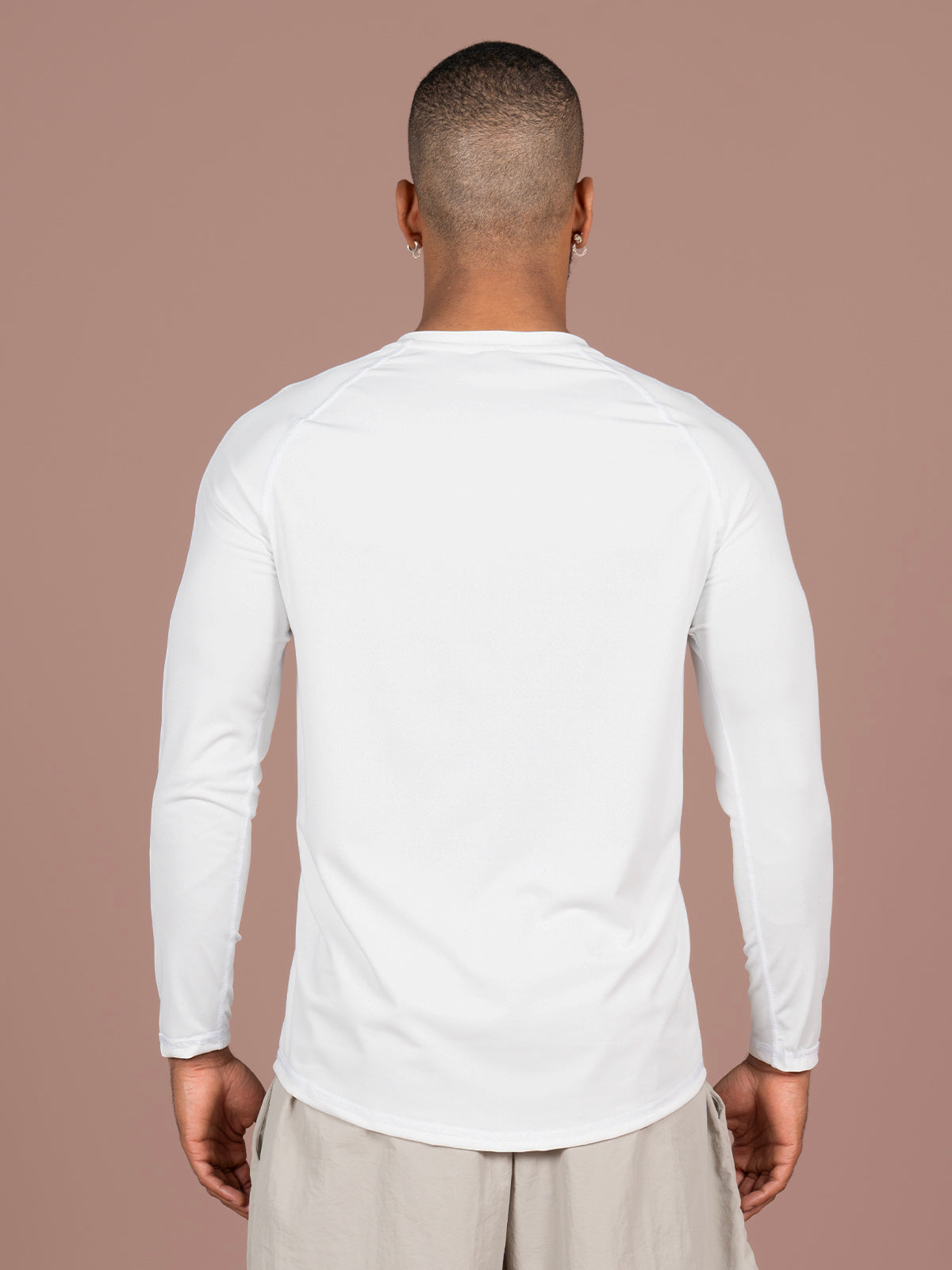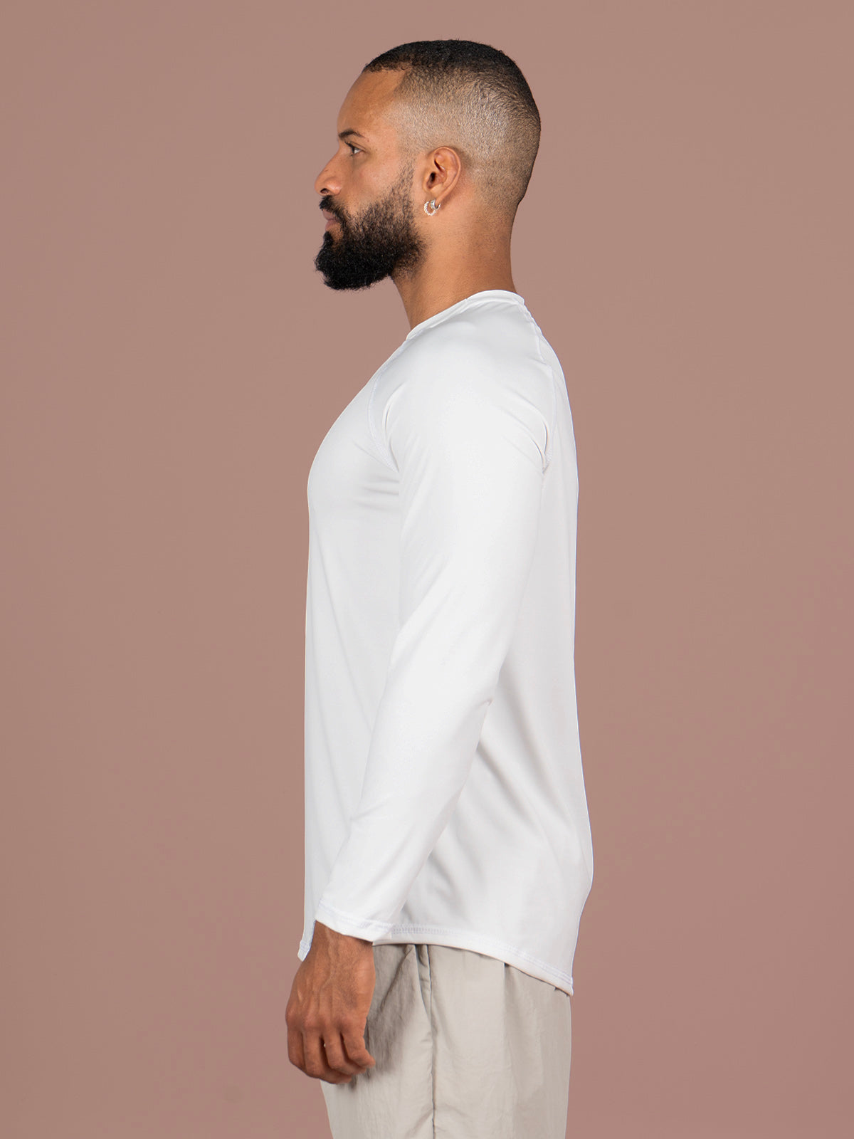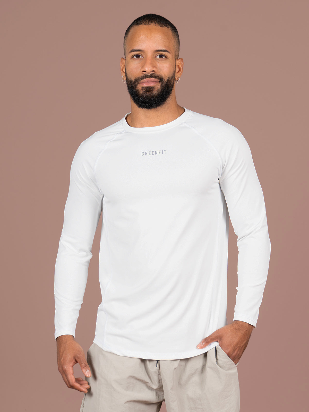 Camibuzo: Camibuzo de hombre con cortes delanteros y mangas ranglan, confeccionado con costuras planas tipo flat seamer que ofrecen mayor comodidad y resistencia. Incluye puntadas decorativas en el ruedo inferior y en los puños, aportando un toque moderno y deportivo.