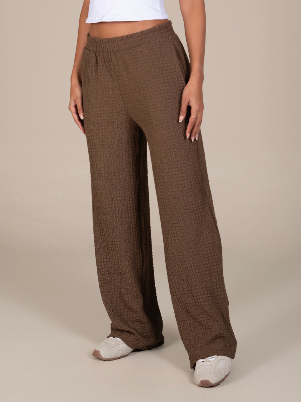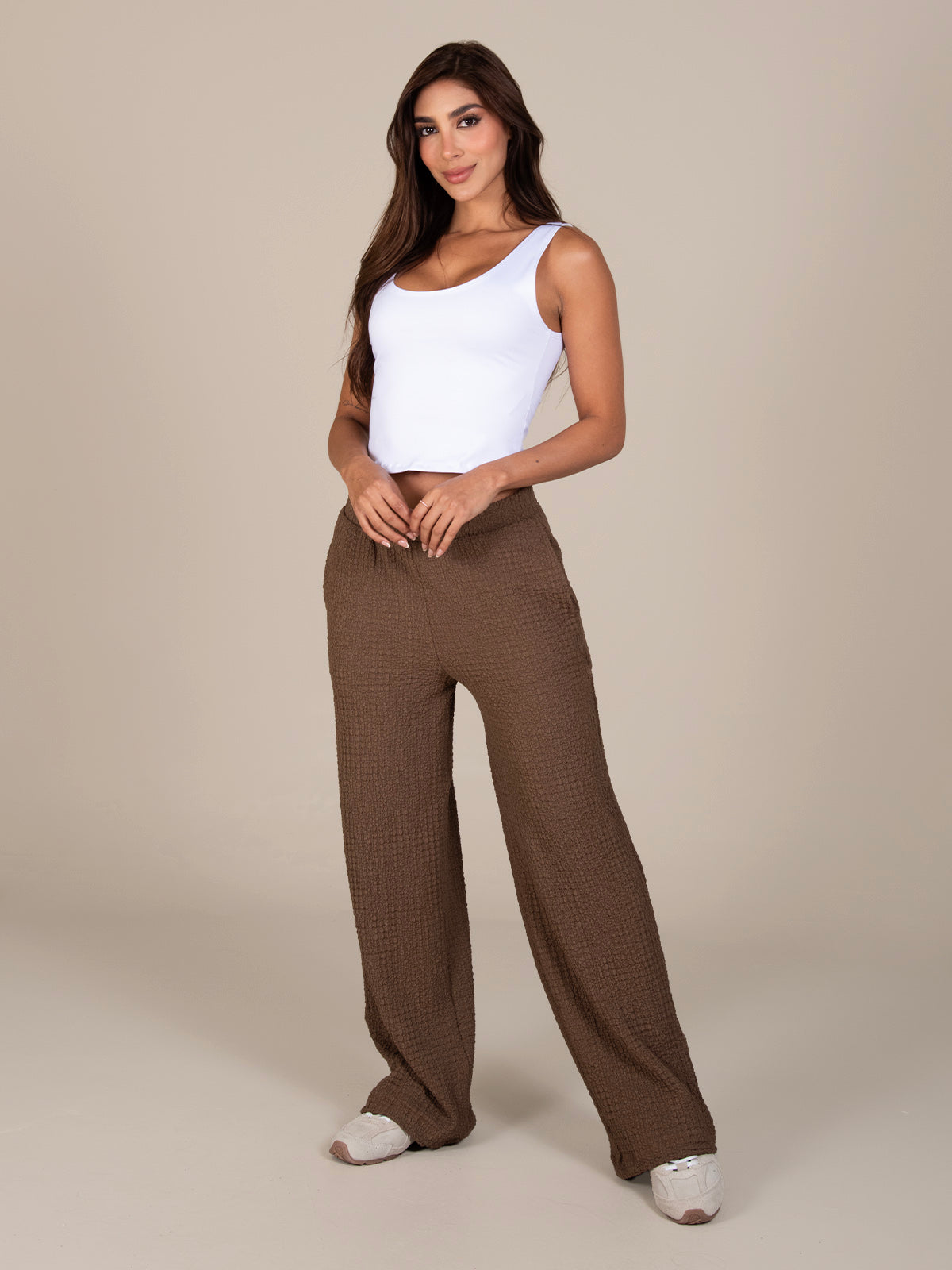 Pantalón de silueta recta que brinda un ajuste cómodo y favorecedor. Cuenta con bolsillos delanteros funcionales y pretina resortada que se adapta al cuerpo sin generar presión, ideal para el uso diario y para crear looks versátiles y relajados.