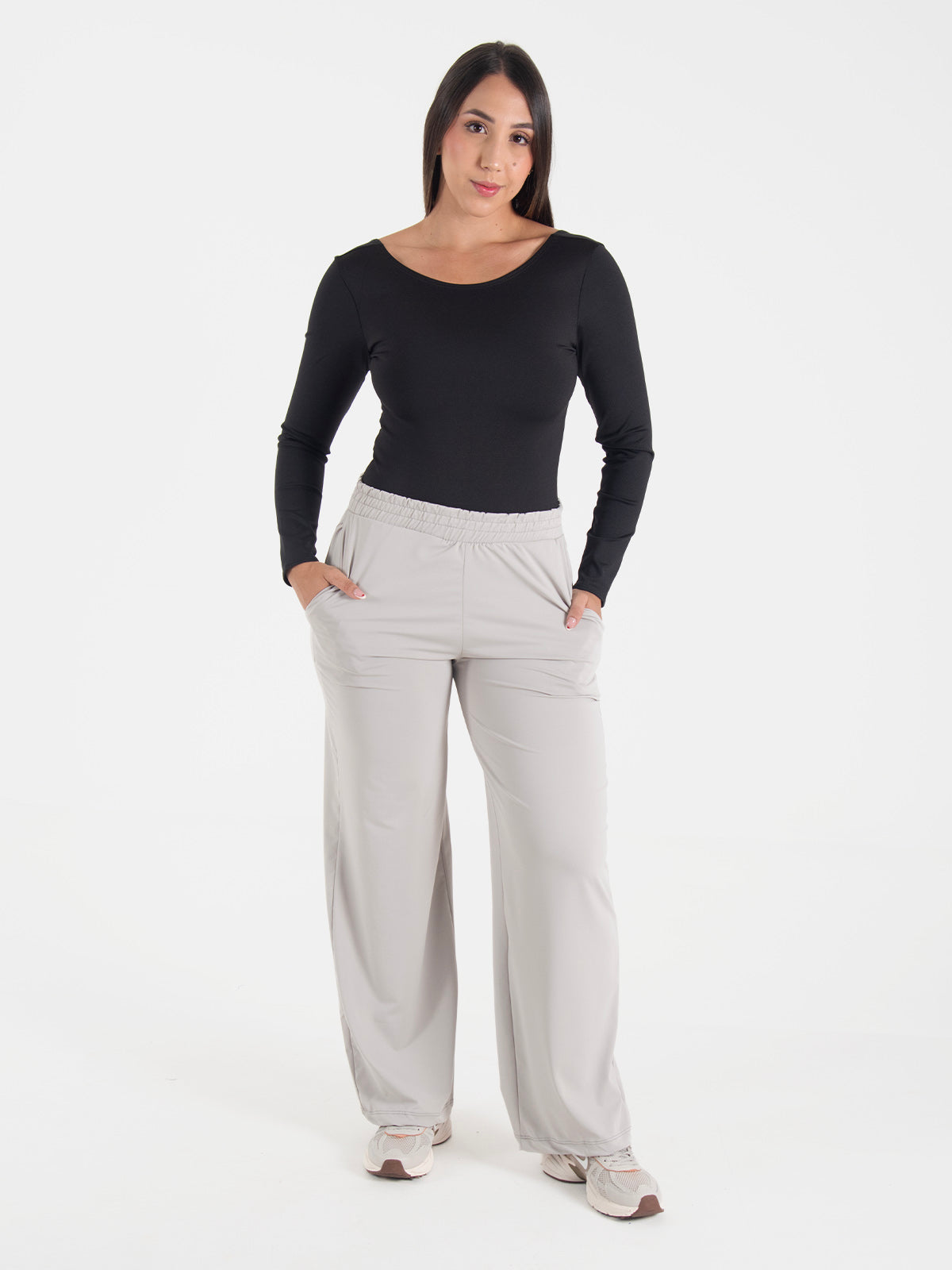 Pantalón: Pantalón de corte relaxed fit con pretina elástica que brinda ajuste cómodo sin apretar. Cuenta con bolsillos delanteros funcionales y bota ancha que aporta un estilo moderno, suelto y fluido. Perfecto para un look casual, deportivo o para el día a día.