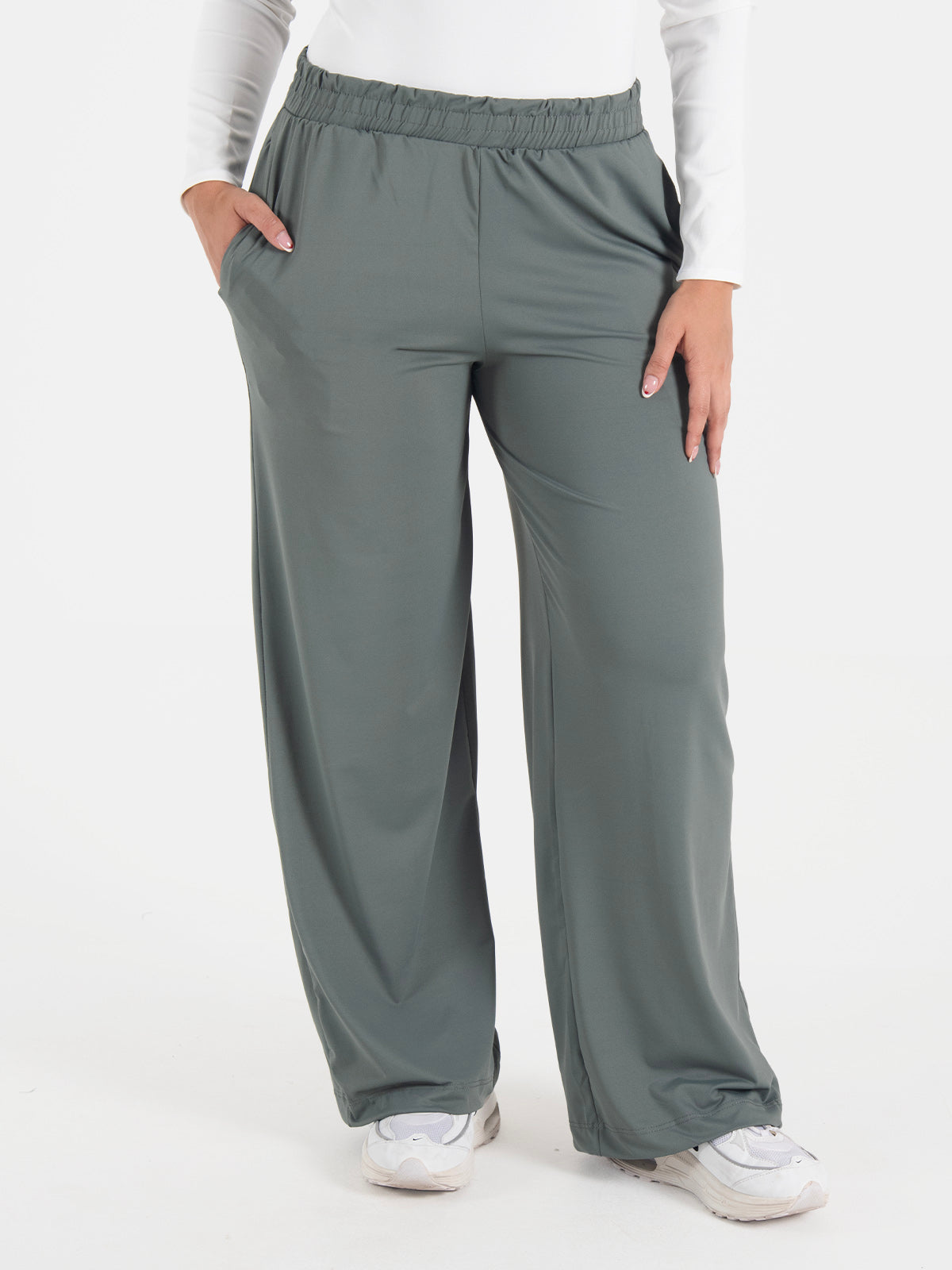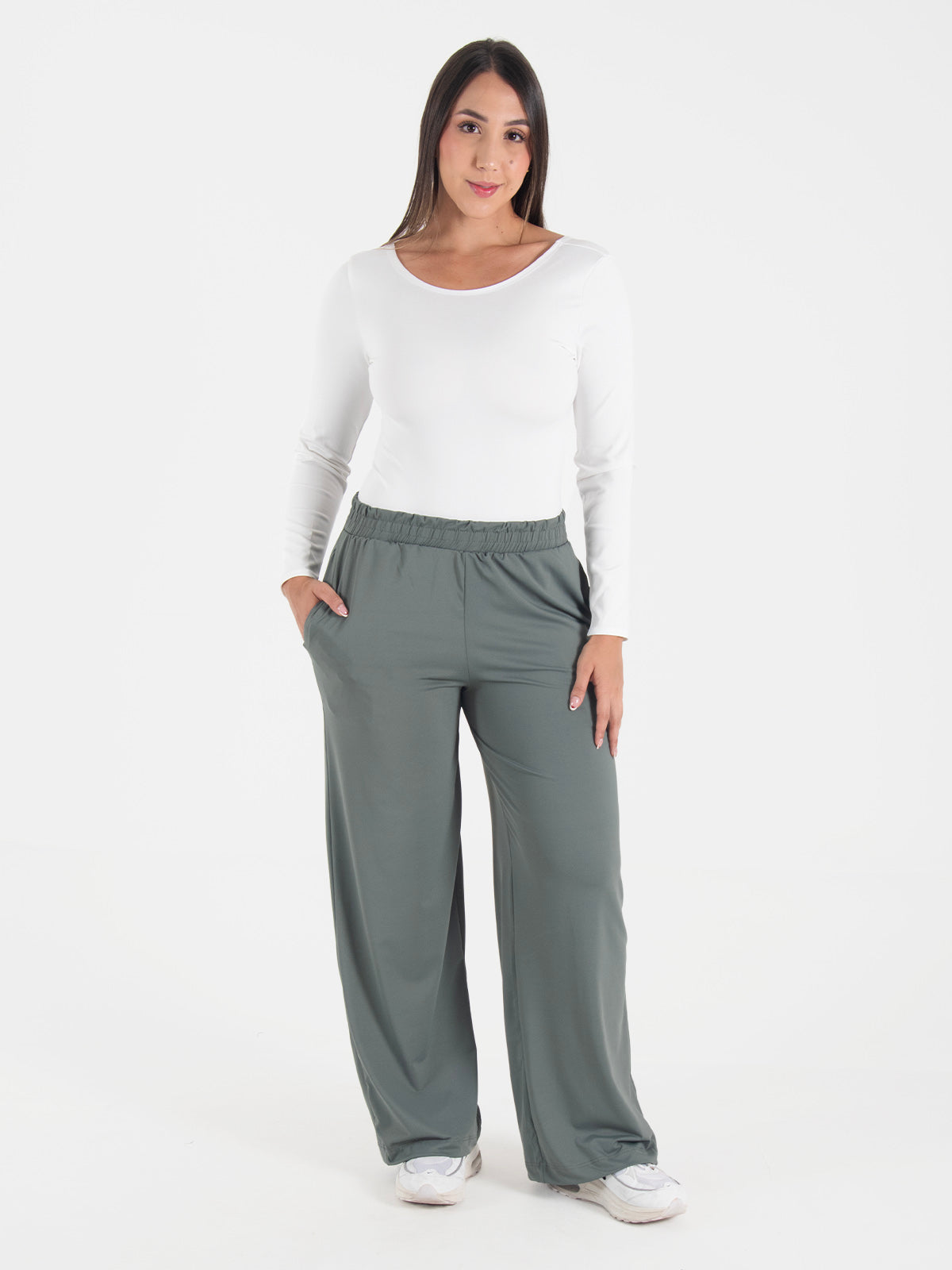 Pantalón: Pantalón de corte relaxed fit con pretina elástica que brinda ajuste cómodo sin apretar. Cuenta con bolsillos delanteros funcionales y bota ancha que aporta un estilo moderno, suelto y fluido. Perfecto para un look casual, deportivo o para el día a día.