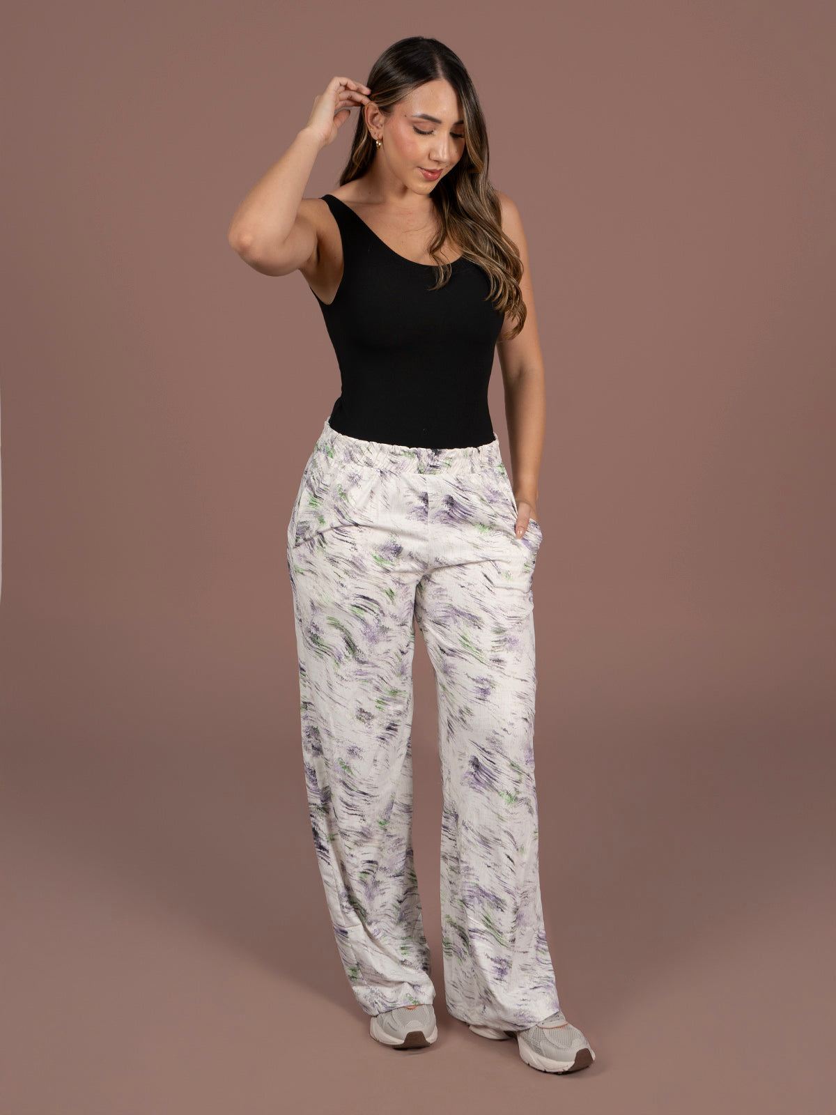 Pantalón Bota Recta Diseño de silueta recta con pretina elástica que proporciona un ajuste cómodo y favorecedor. Incluye bolsillos frontales funcionales, perfectos para un uso práctico sin perder estilo.