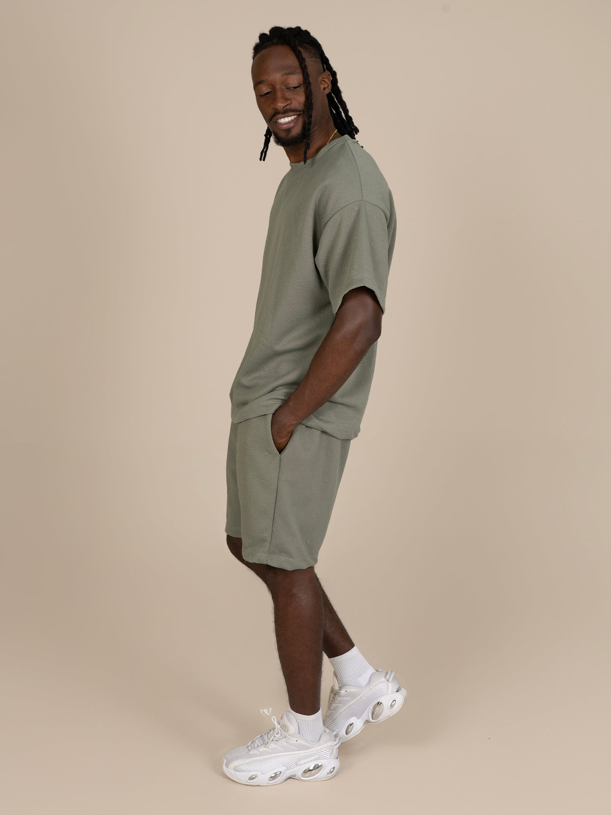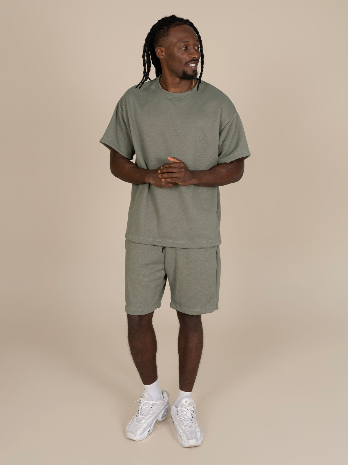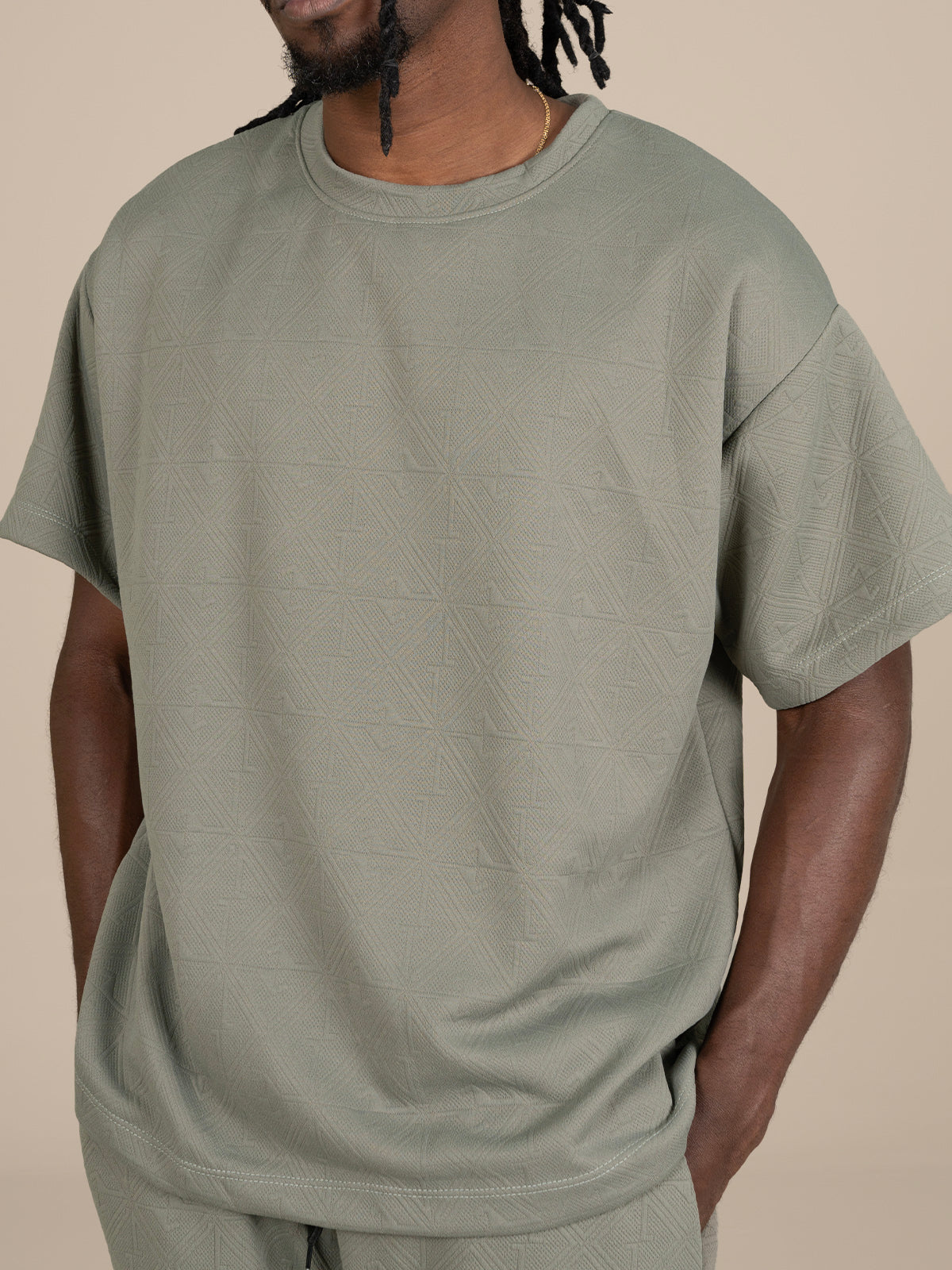 Camiseta: Silueta tipo oversize con manga corta y cuello ancho, brindando un estilo relajado y moderno ideal para uso diario.