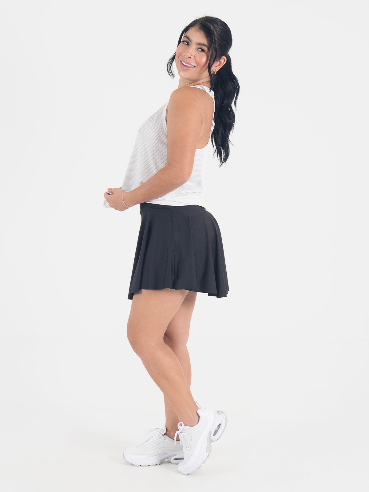 Faldashort: Diseño con falda simétrica y fajón medio que ofrece un ajuste favorecedor y moderno.