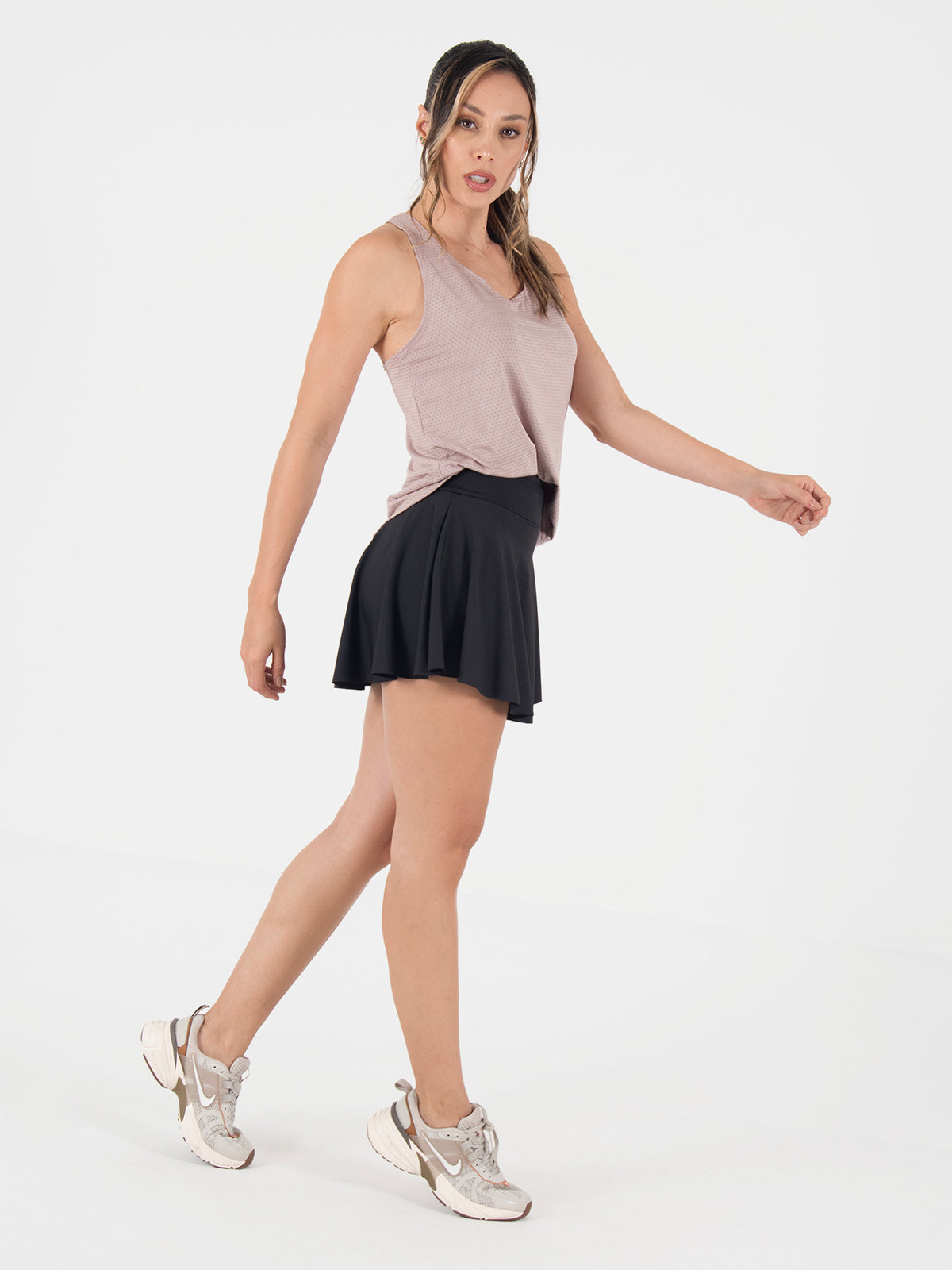 Faldashort: Diseño con falda simétrica y fajón medio que ofrece un ajuste favorecedor y moderno.