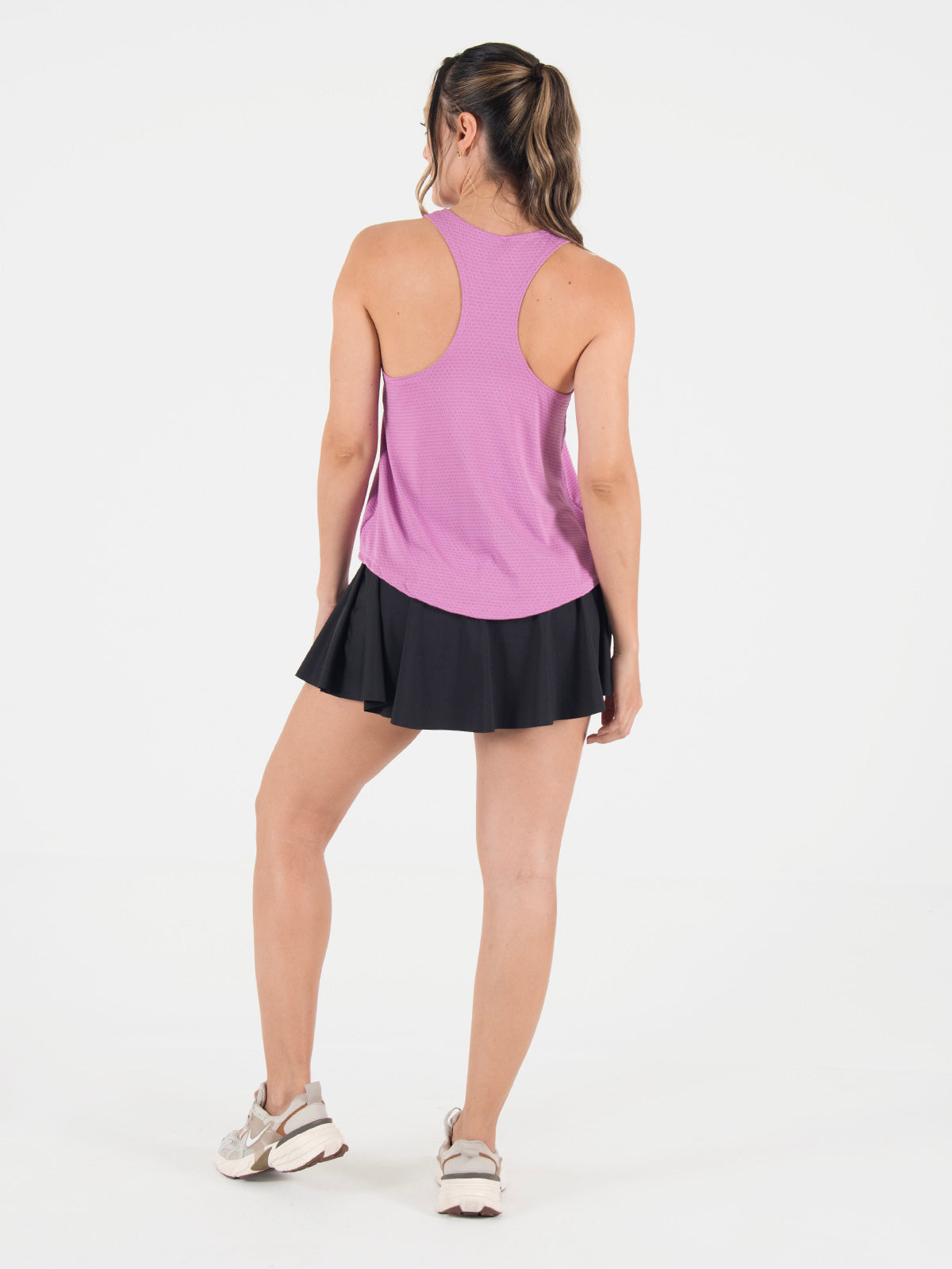 Blusa: deportiva sin mangas, con cuello sesgado y terminación curva en el inferior que aporta un toque moderno y favorecedor.