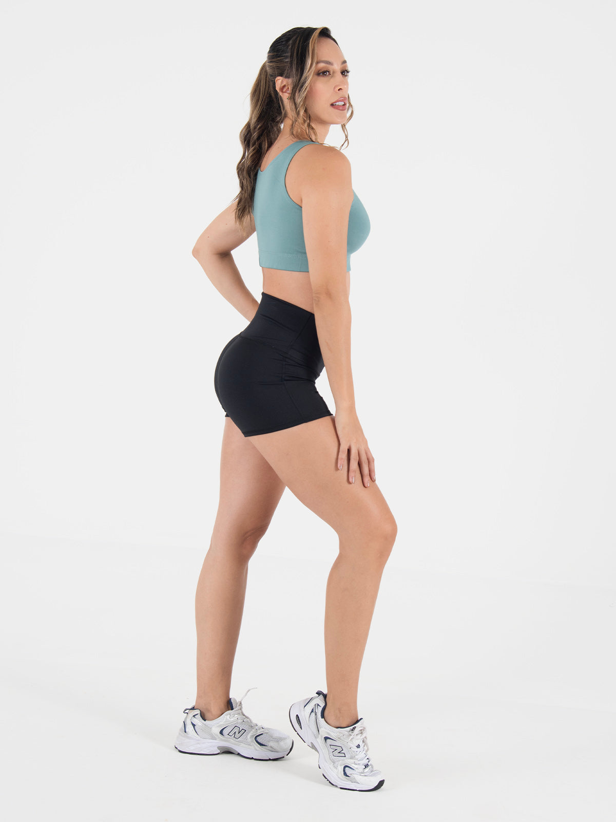Top: Escote redondo con elástico en la parte inferior para un ajuste firme. La espalda amplia brinda soporte adicional, asegurando comodidad y libertad de movimiento.