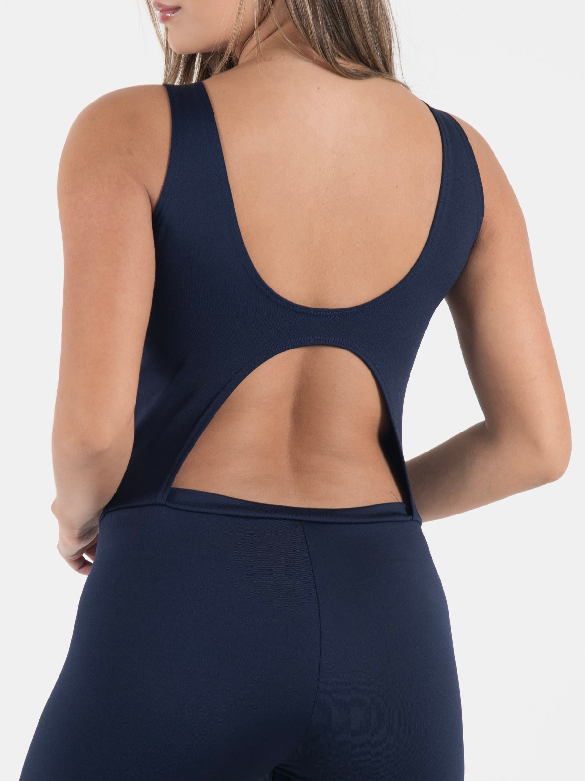 Enterizo ajustado tipo leggins, diseñado con manga sisa y escote delantero que estiliza la figura. En la parte posterior incluye un escote limpio y una abertura terminada con dobles de 1 cm para un acabado prolijo. Su silueta se adapta al cuerpo y ofrece comodidad y soporte para entrenamientos o uso diario.
