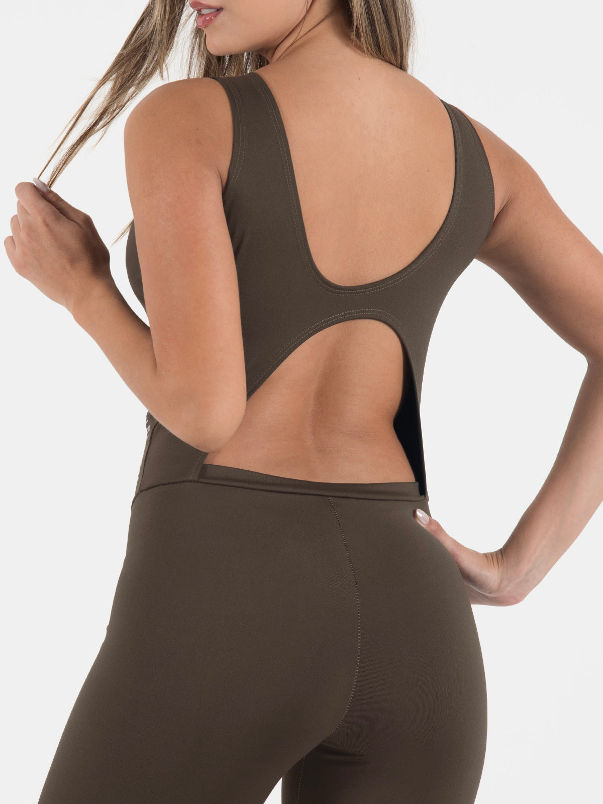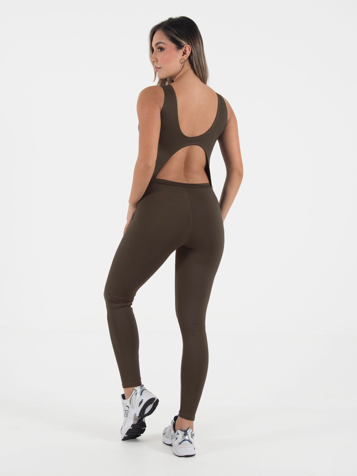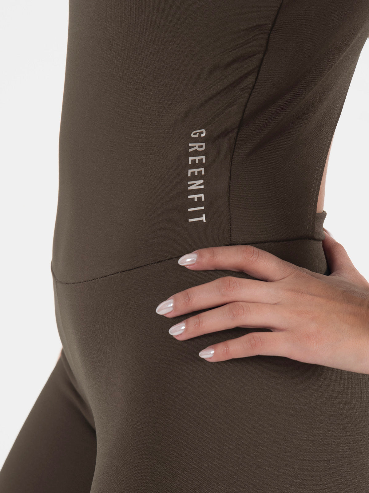 Enterizo ajustado tipo leggins, diseñado con manga sisa y escote delantero que estiliza la figura. En la parte posterior incluye un escote limpio y una abertura terminada con dobles de 1 cm para un acabado prolijo.