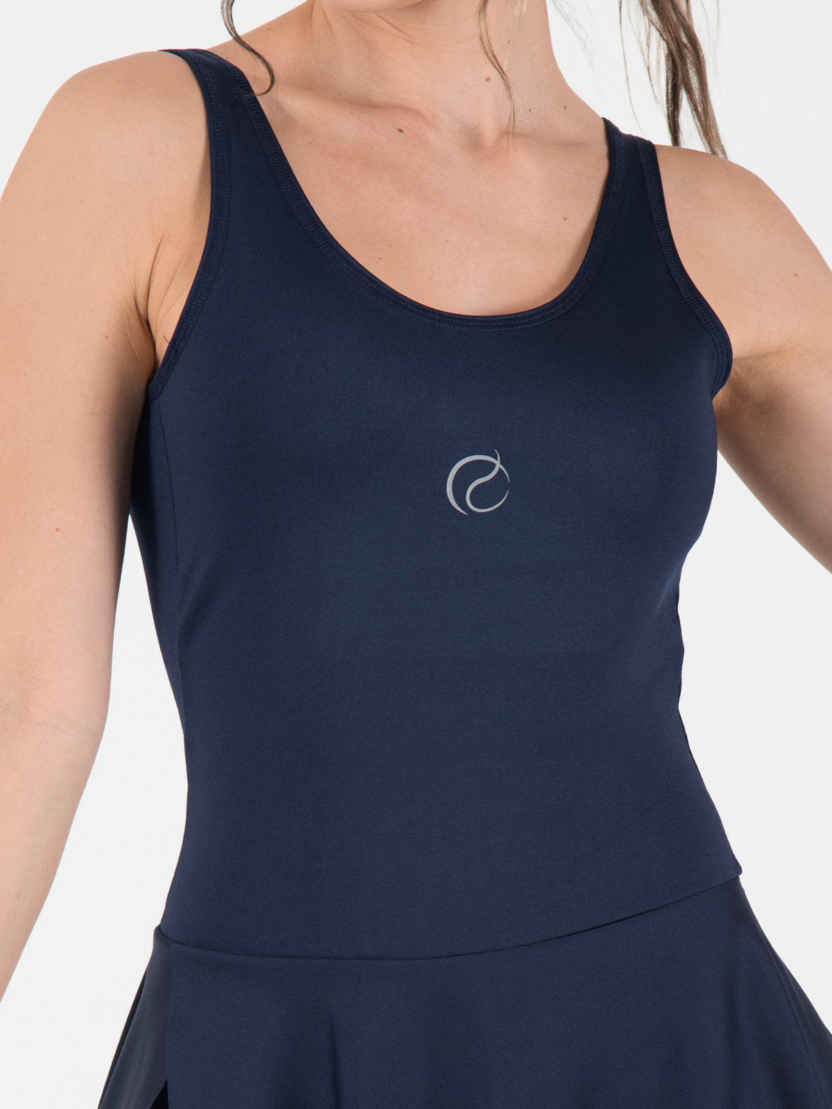 Enterizo: Ajustado, con mangas sisa y cuello doblado con costura decorativa. Incluye falda con abertura al corte en el lateral derecho y short interno, brindando comodidad y estilo en una sola prenda.