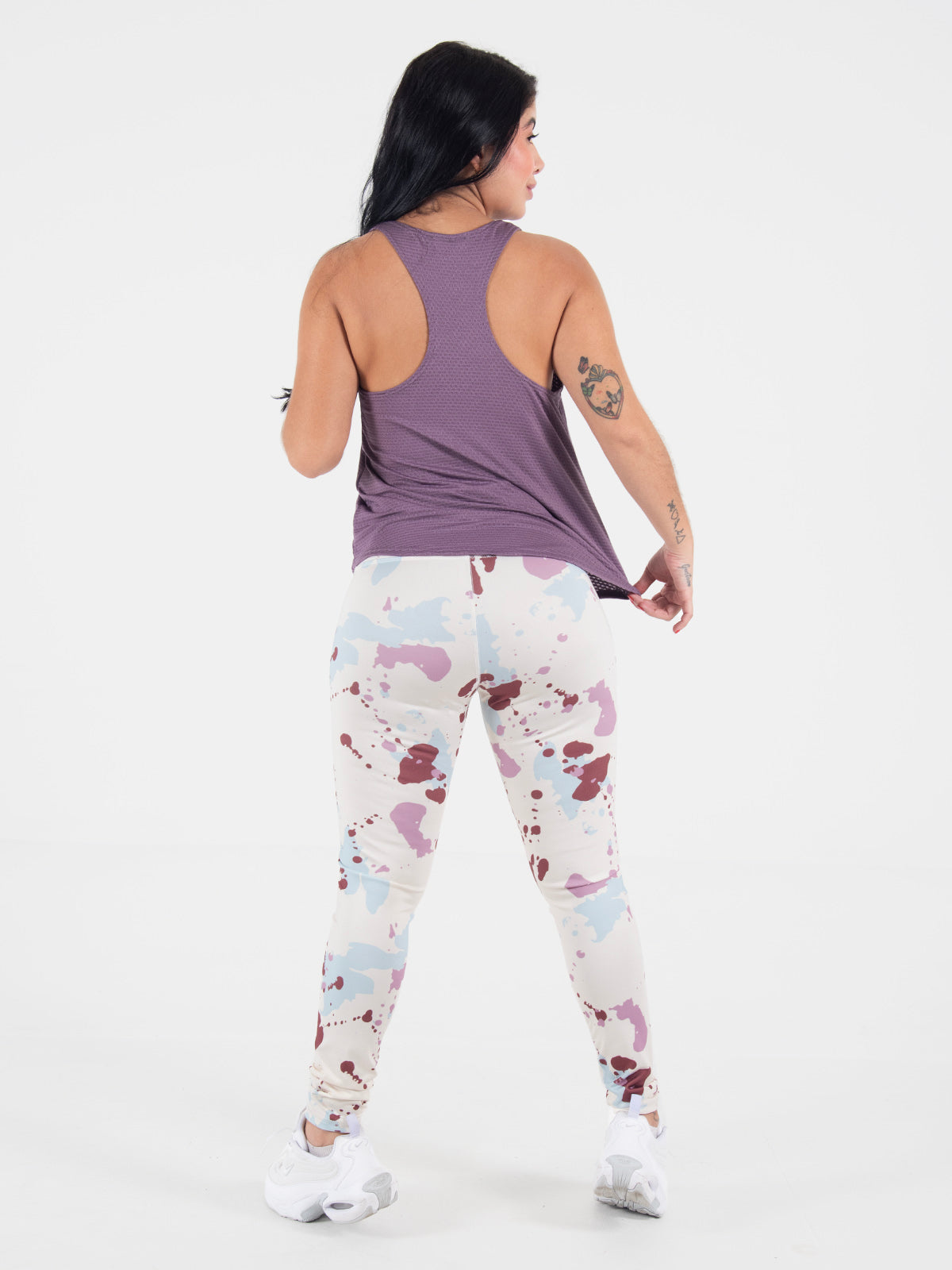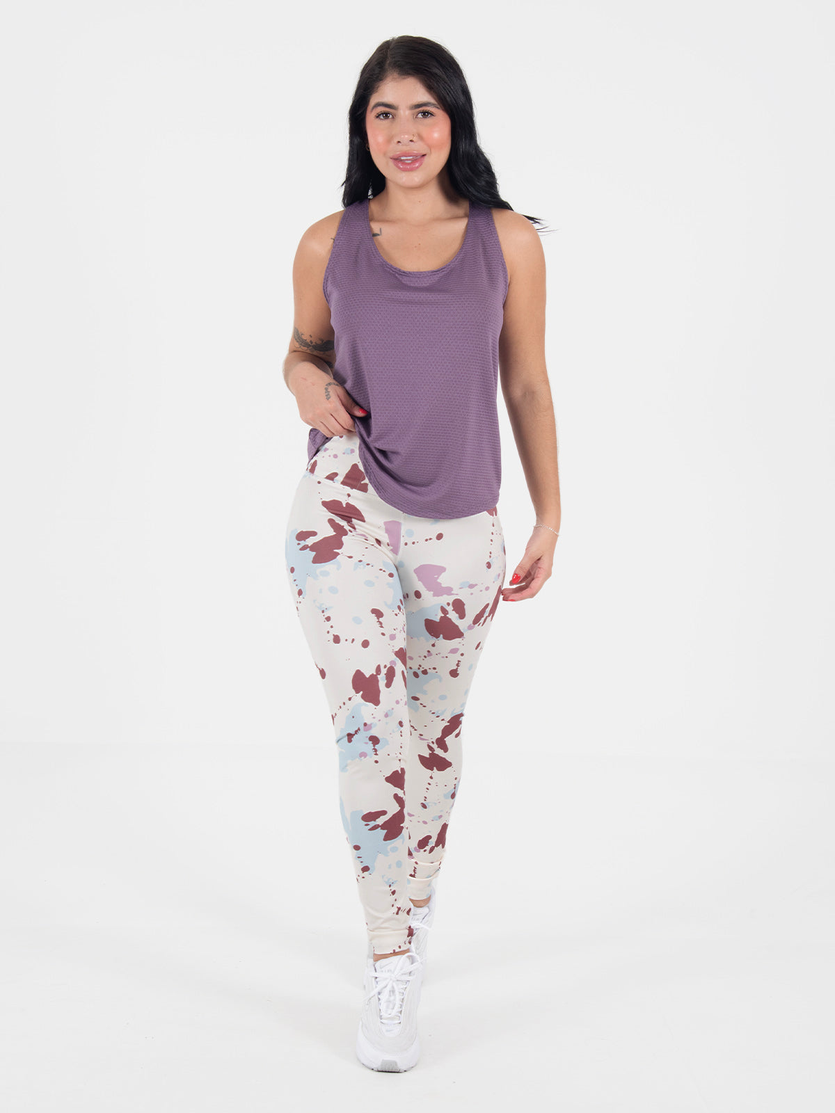 Blusa: deportiva sin mangas, con cuello sesgado y terminación curva en el inferior que aporta un toque moderno y favorecedor.