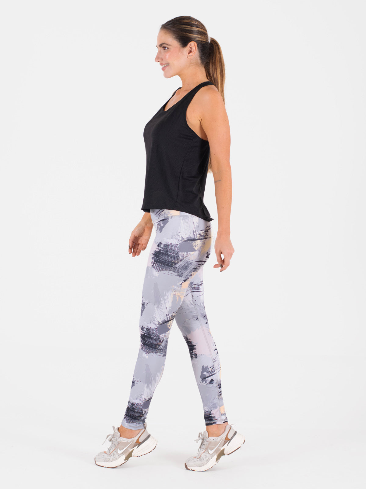 Blusa: deportiva sin mangas, con cuello sesgado y terminación curva en el inferior que aporta un toque moderno y favorecedor.
