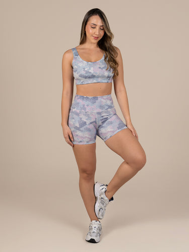 Top: Escote redondo con elástico en inferior para ajuste seguro y espalda amplia para mayor soporte.