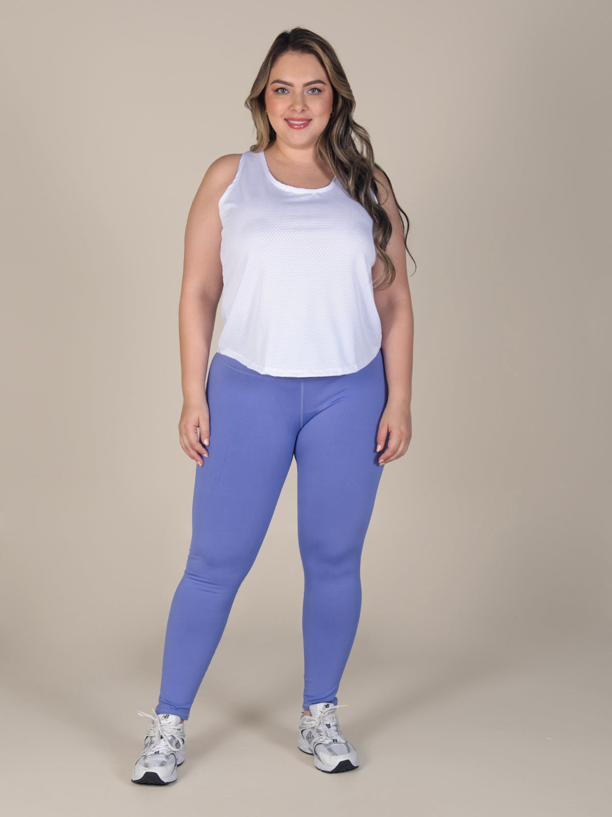 Blusa: Prenda ligera y versátil con escote redondo. Incluye posterior partido y sisa profunda en espalda, lo que le da un estilo fresco y moderno, ideal para climas cálidos o para entrenar con comodidad.