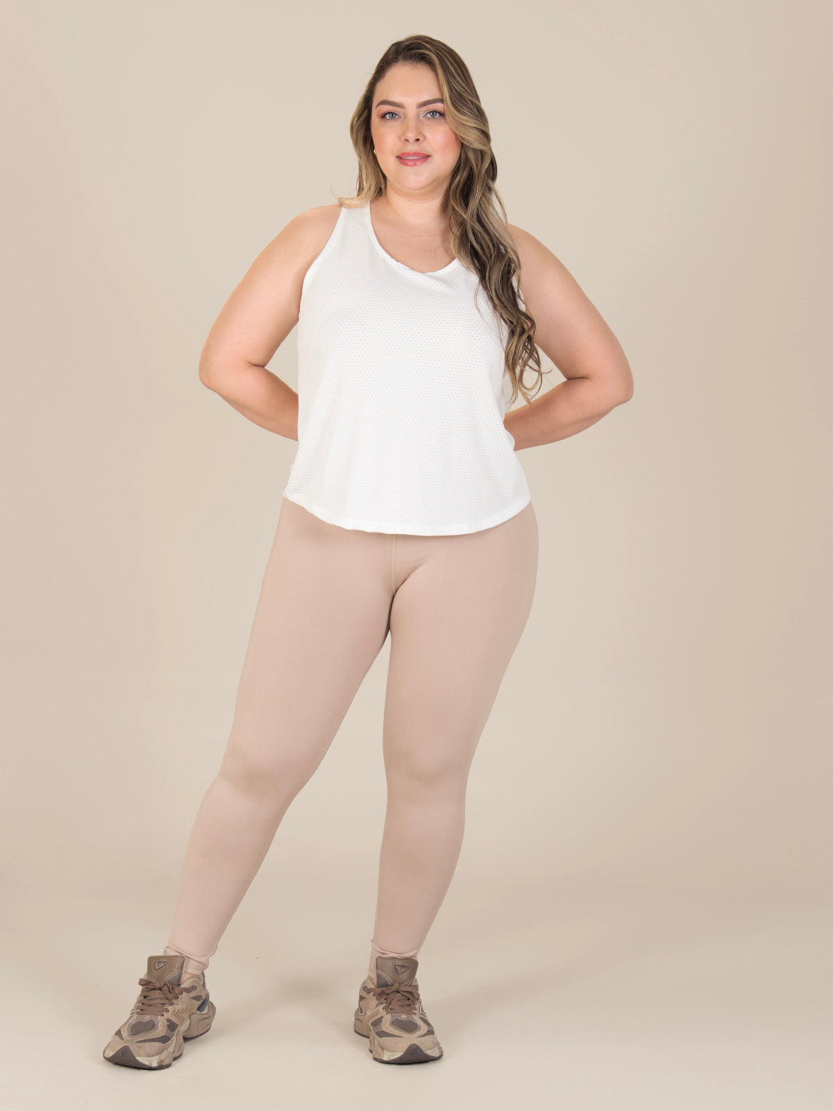 Blusa: Prenda ligera y versátil con escote redondo. Incluye posterior partido y sisa profunda en espalda, lo que le da un estilo fresco y moderno, ideal para climas cálidos o para entrenar con comodidad.