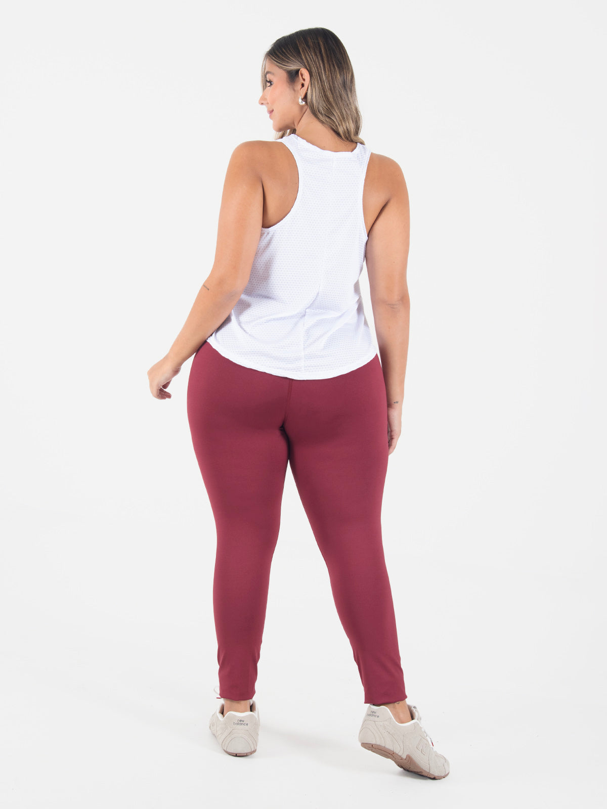 Blusa: Prenda ligera y versátil con escote redondo. Incluye posterior partido y sisa profunda en espalda, lo que le da un estilo fresco y moderno, ideal para climas cálidos o para entrenar con comodidad.