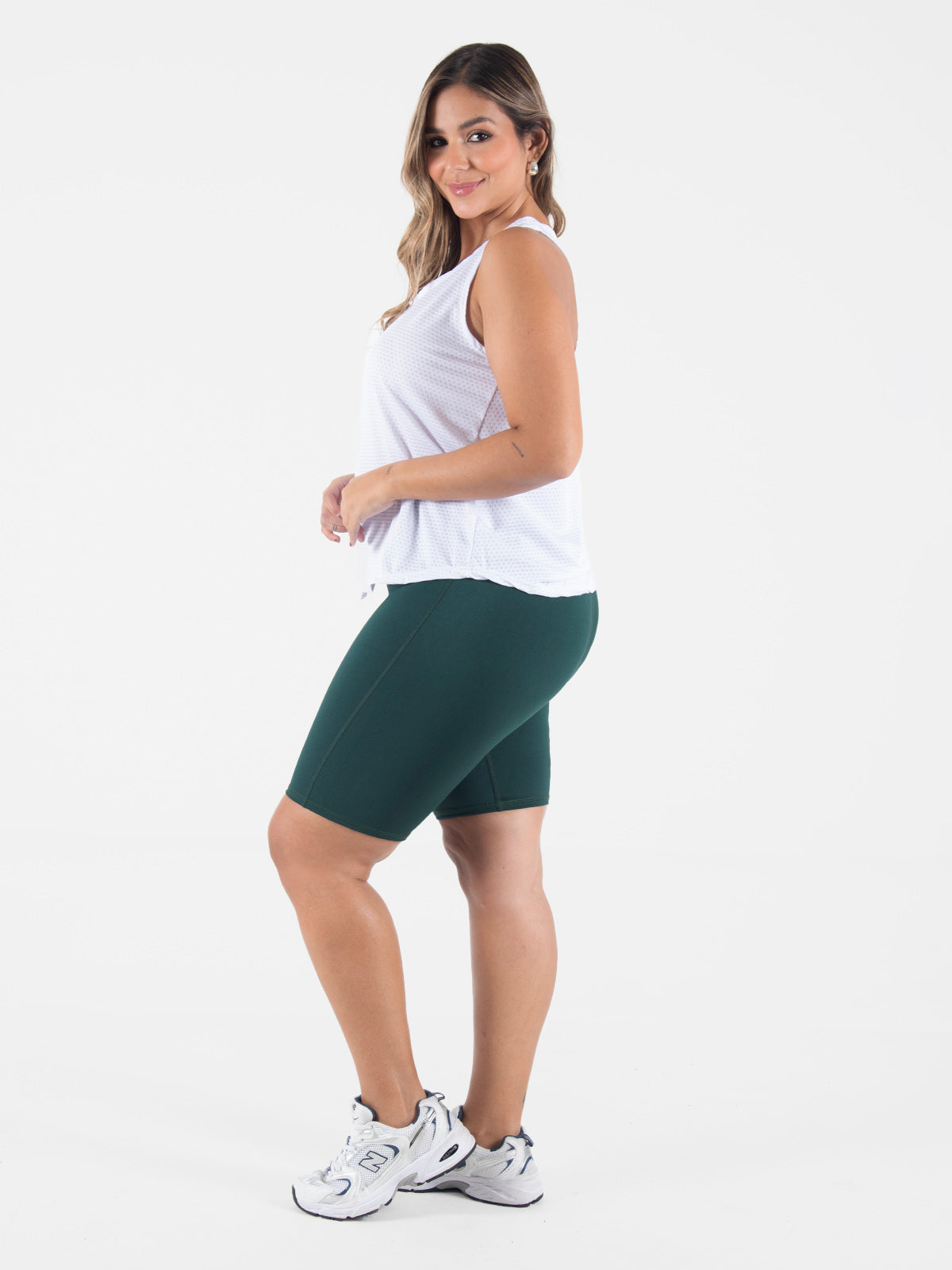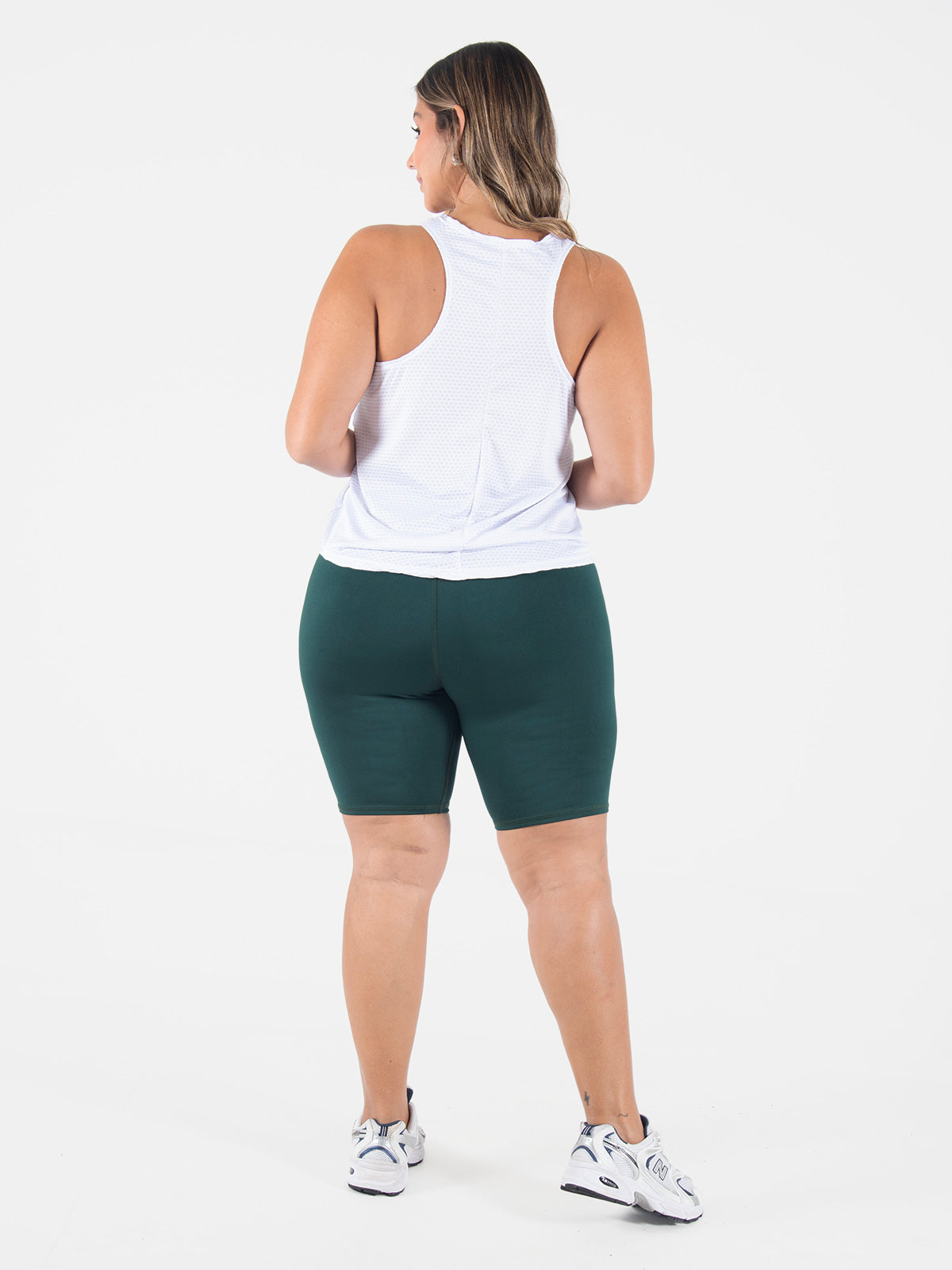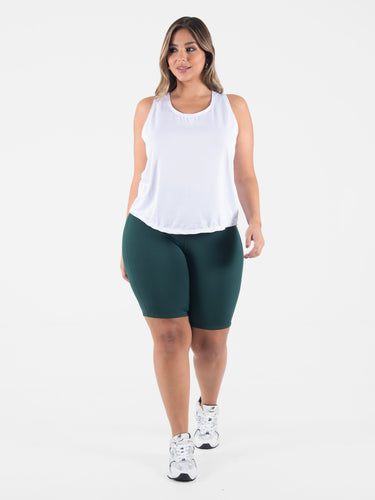 Blusa: Prenda ligera y versátil con escote redondo. Incluye posterior partido y sisa profunda en espalda, lo que le da un estilo fresco y moderno, ideal para climas cálidos o para entrenar con comodidad.