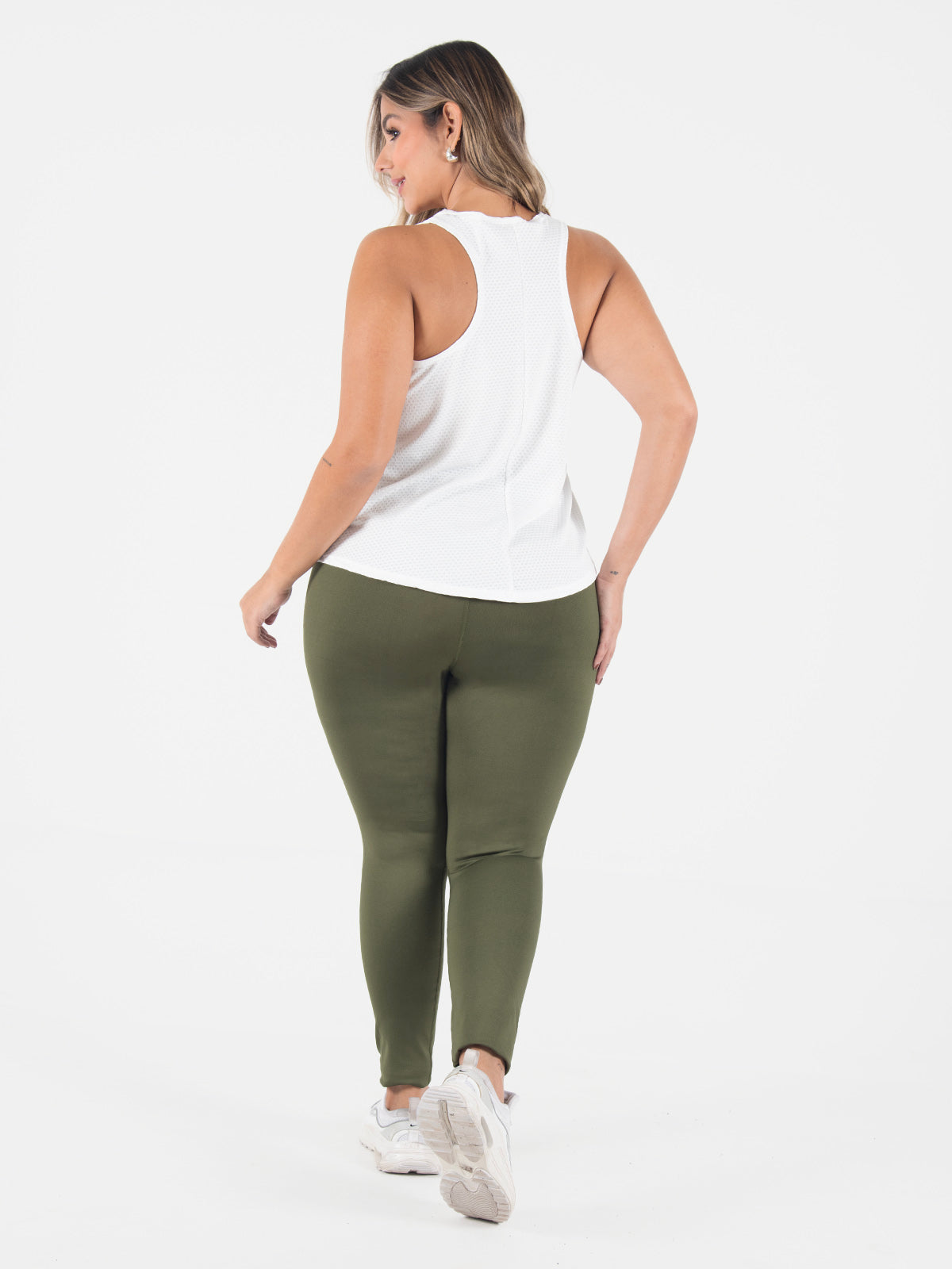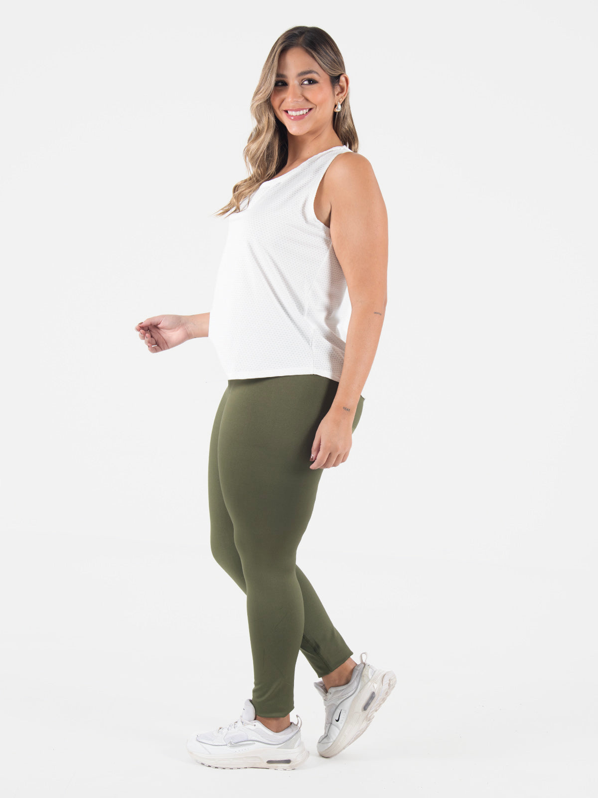 Blusa: Prenda ligera y versátil con escote redondo. Incluye posterior partido y sisa profunda en espalda, lo que le da un estilo fresco y moderno, ideal para climas cálidos o para entrenar con comodidad.