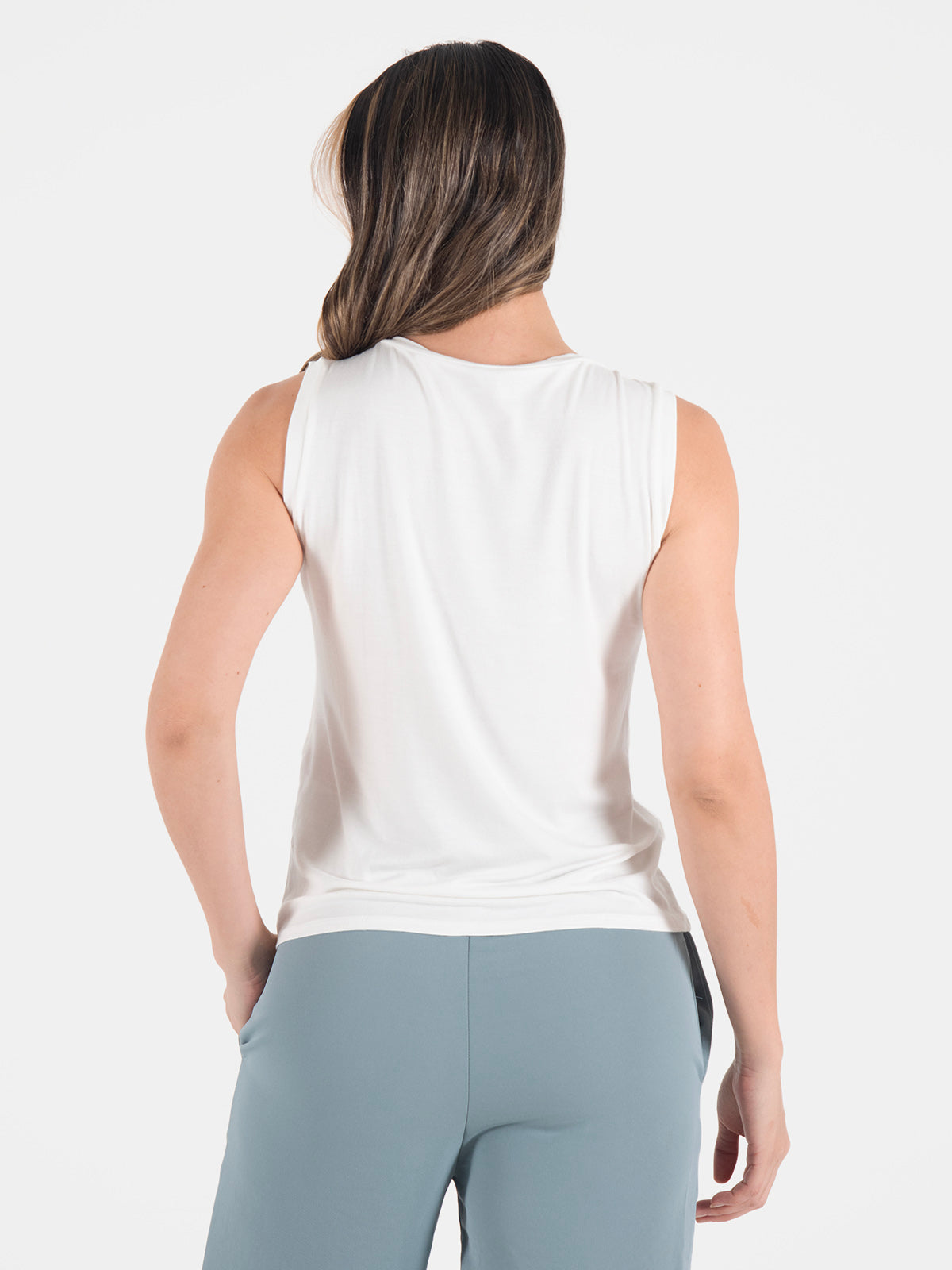 Camisilla Larga Diseño versátil y moderno de manga sisa con puños doblados y cuello redondo. Su silueta ligera y cómoda la convierte en una prenda ideal para combinar en diferentes ocasiones.