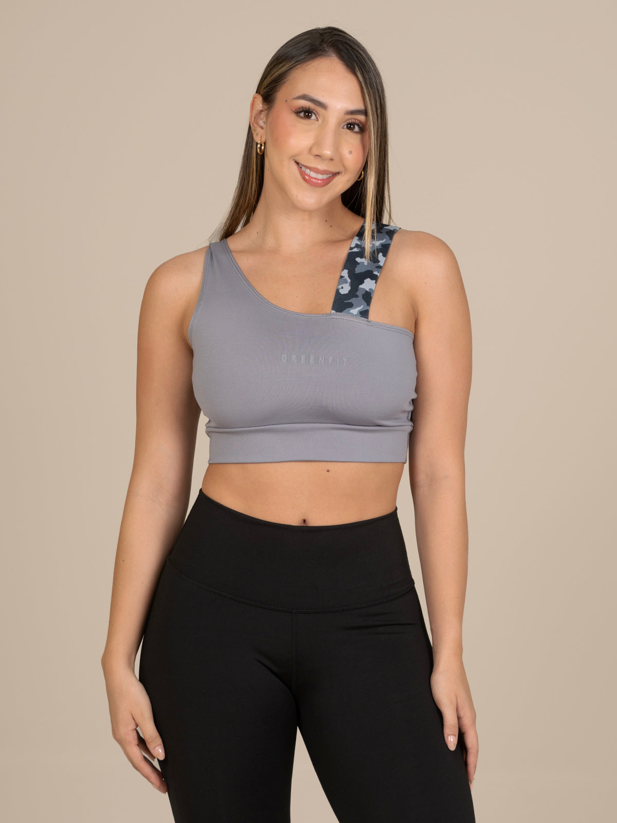 Top de diseño moderno con una sola cargadera en elástico bordado que aporta un detalle diferenciador y femenino. Incluye fajón inferior que brinda mejor ajuste y soporte, ideal para looks deportivos o para combinar en outfits casuales con actitud.